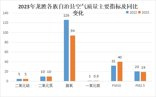 图1 2023年龙胜各族自治县空气质量主要指标及同比变化