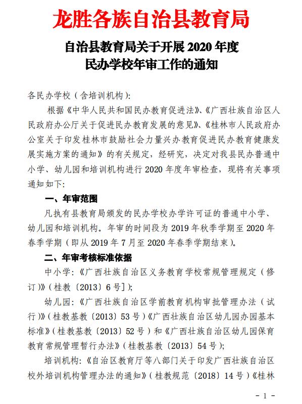 自治县教育局关于开展2020年度民办学校年审工作的通知
