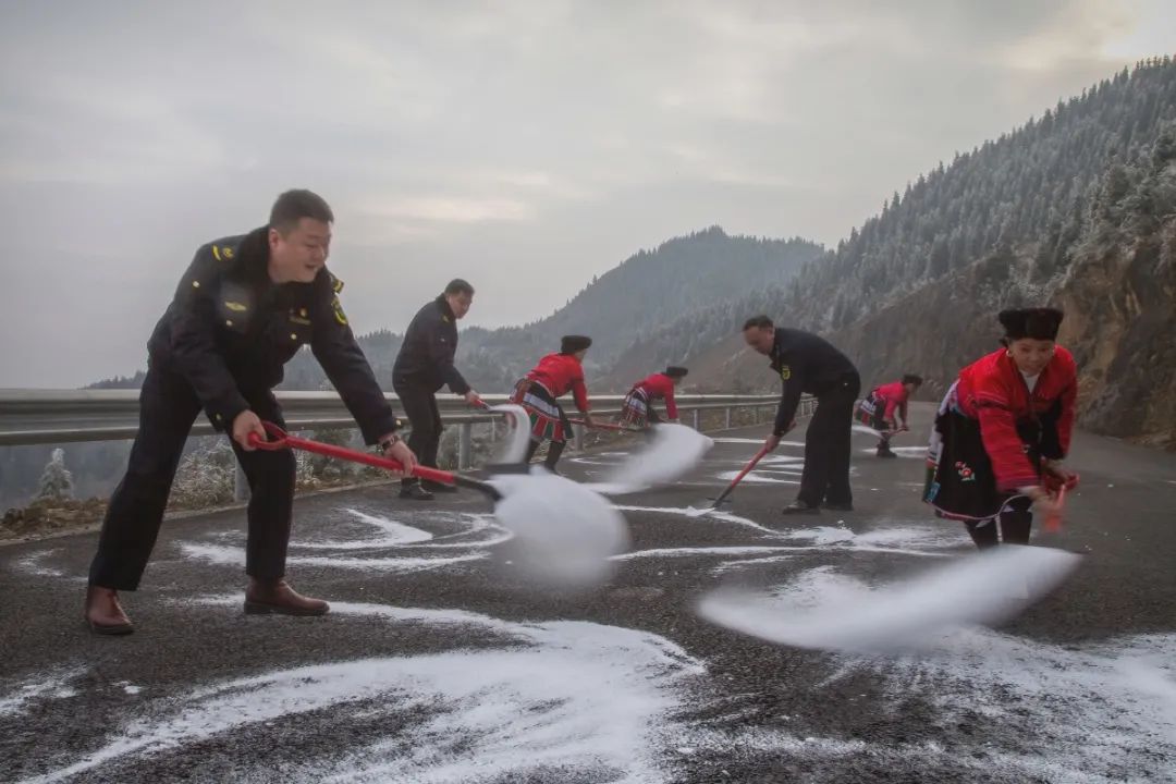 12月19日,龙胜县应急管理局接到群众来电,称位于海拔1300多米的龙脊镇中六村部分路段结冰,影响出行。接到电话后,当天值班的郑旭云局长立即带领工作人员赶到现场,与当地瑶族群众一起撒盐除冰,消除隐患。