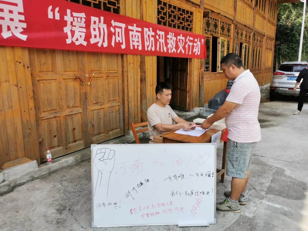 募捐活动开始前,地灵村第一书记汤亚飞为大家简要讲述了河南等地灾情发生的原委和目前的紧张形势。村党总支书记、主任吴广崇为大家宣读了“心手相连 共渡难关 援助河南防汛救灾行动”倡议书。