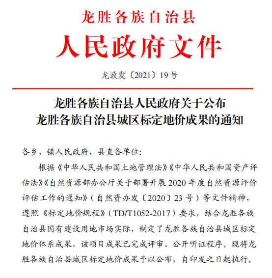 龙政发〔2021〕19 号龙胜各族自治县人民政府关于公布龙胜各族自治县城区标定地价成果的通知