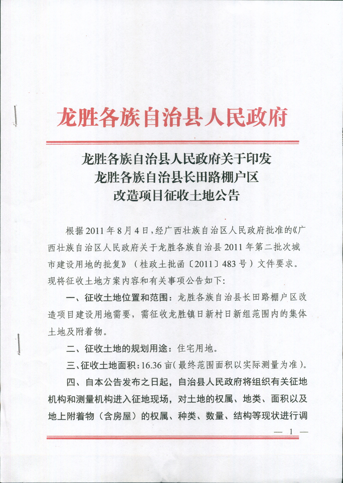 长田路棚户区改造项目征收土地公告及征地拆迁安置补偿实施办法
