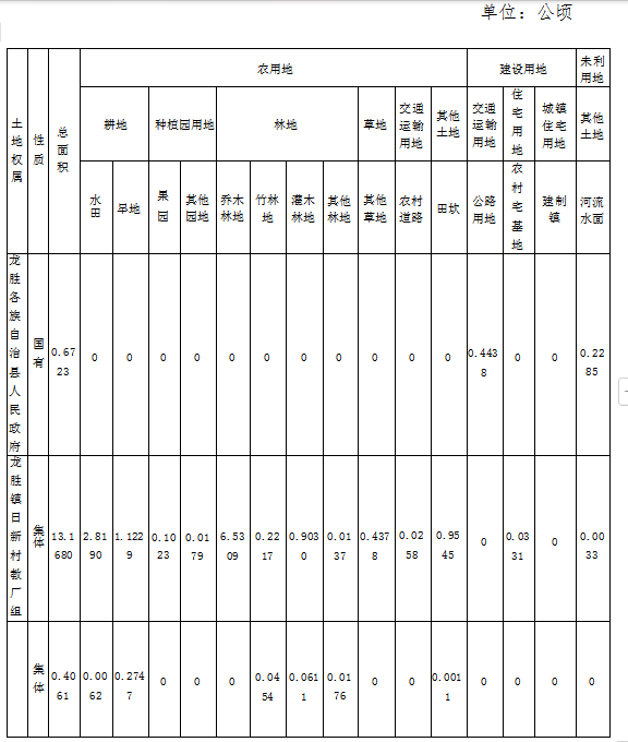 四、拟征收集体土地的权属及分类面积