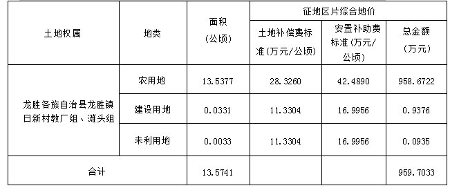 龙胜各族自治县人民政府根据龙胜县土地利用总体规划和年度土地利用计划的安排,依据《中华人民共和国土地管理法》的有关规定,为保障项目用地,我县拟定了《征地补偿安置方案》,现将征地补偿安置方案内容和有关事项公告如下: