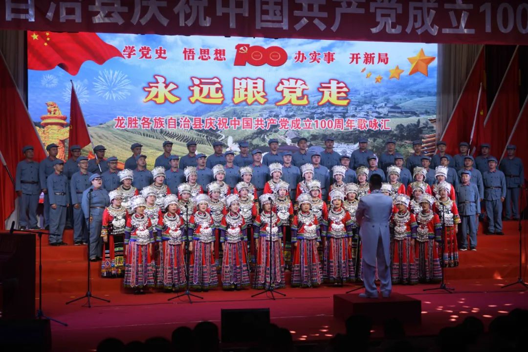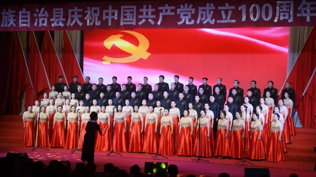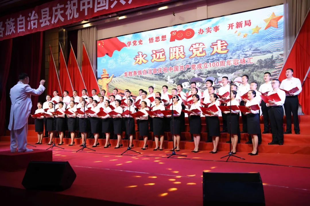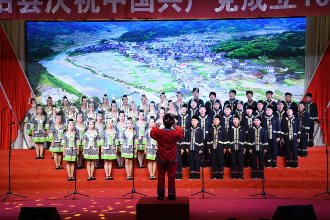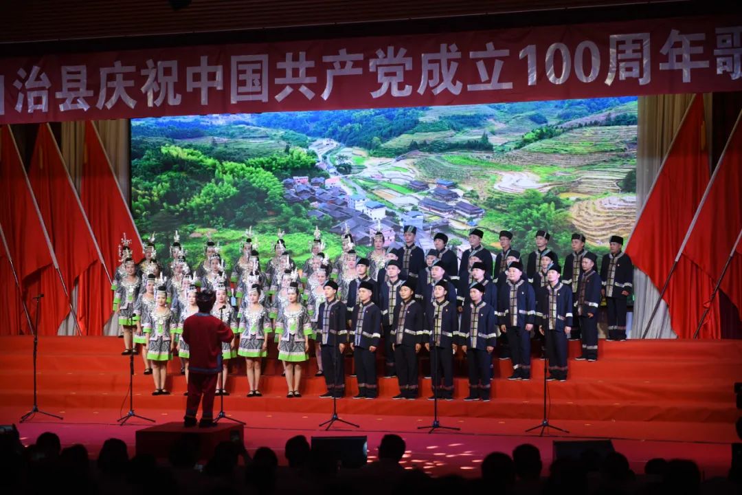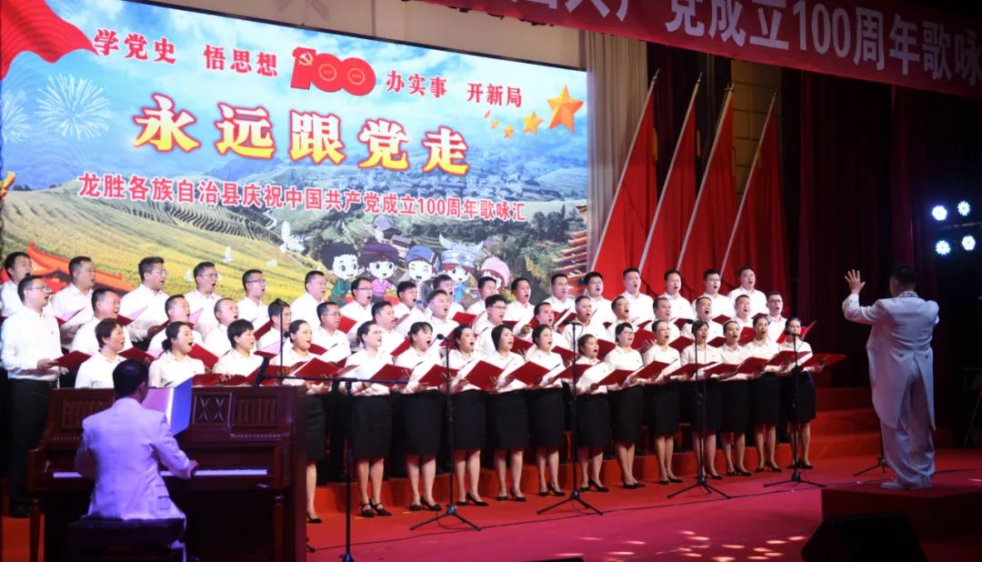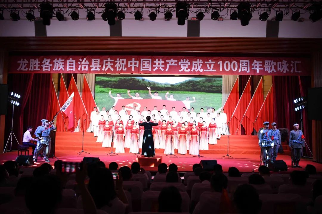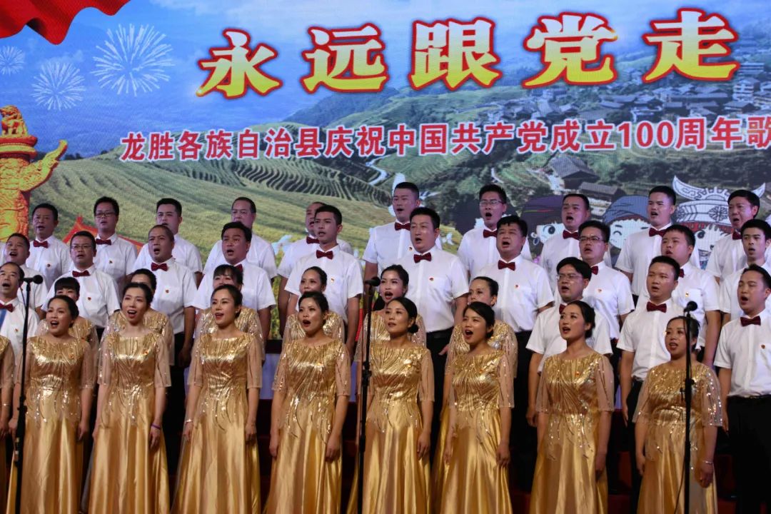 6月28日晚,龙胜各族自治县在县委党校会议中心举办庆祝中国共产党成立100周年歌咏汇。歌咏汇上的合唱队伍是在27日举行的全县歌咏比赛中精选出的优秀代表。县委主要负责人雷陈、自治县县长黄强、县人大常委会主任粟海英、县政协主席杨桂姬等在家的县四家班子领导与千余名干部群众在现场观看演出。