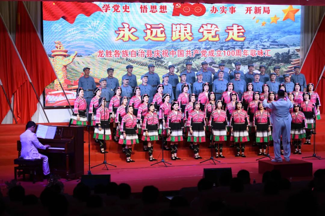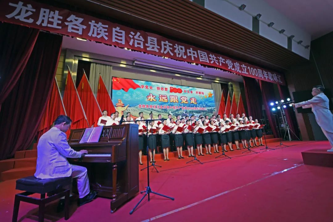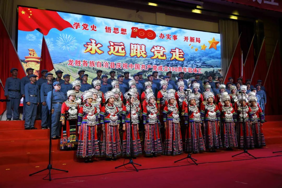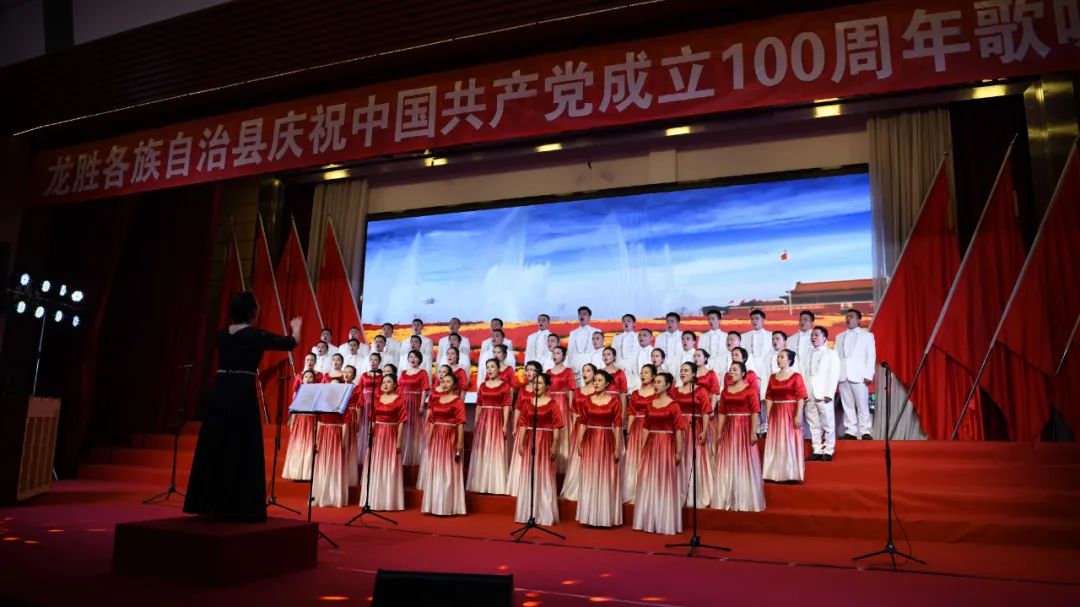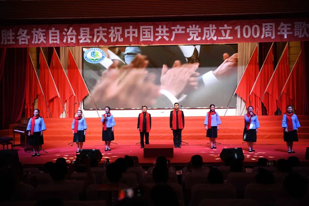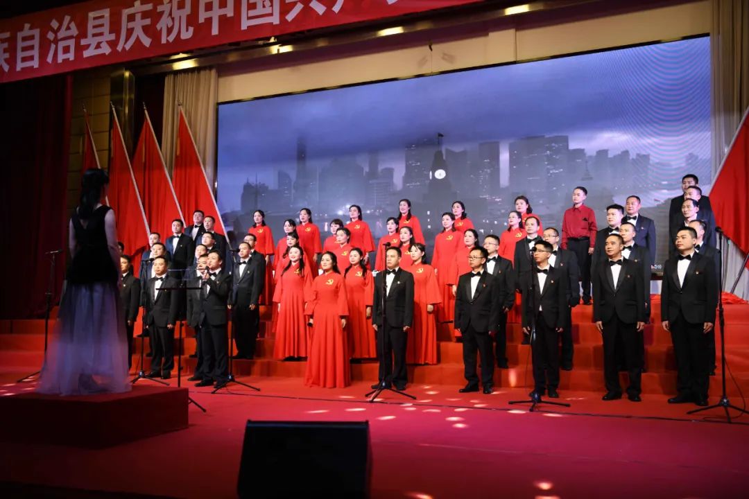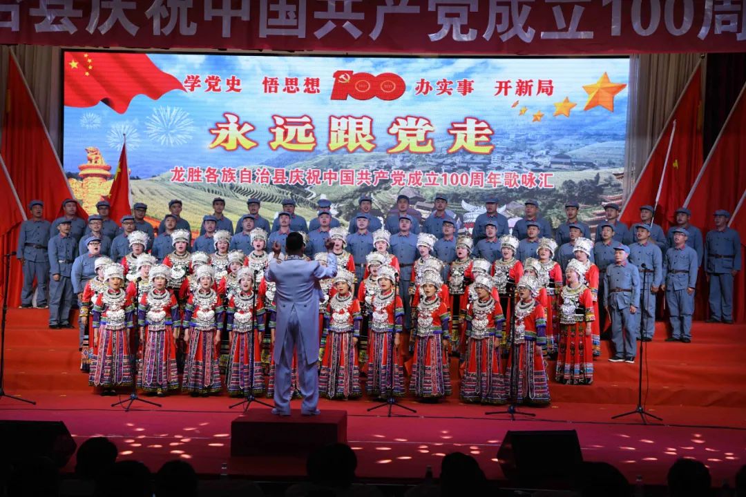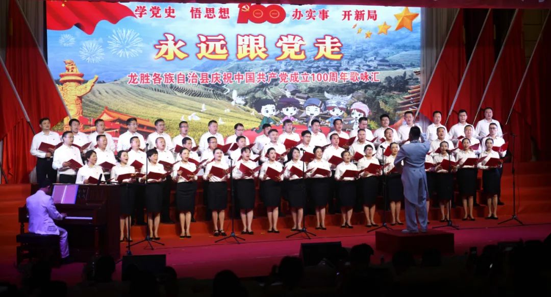 6月28日晚,龙胜各族自治县在县委党校会议中心举办庆祝中国共产党成立100周年歌咏汇。歌咏汇上的合唱队伍是在27日举行的全县歌咏比赛中精选出的优秀代表。县委主要负责人雷陈、自治县县长黄强、县人大常委会主任粟海英、县政协主席杨桂姬等在家的县四家班子领导与千余名干部群众在现场观看演出。