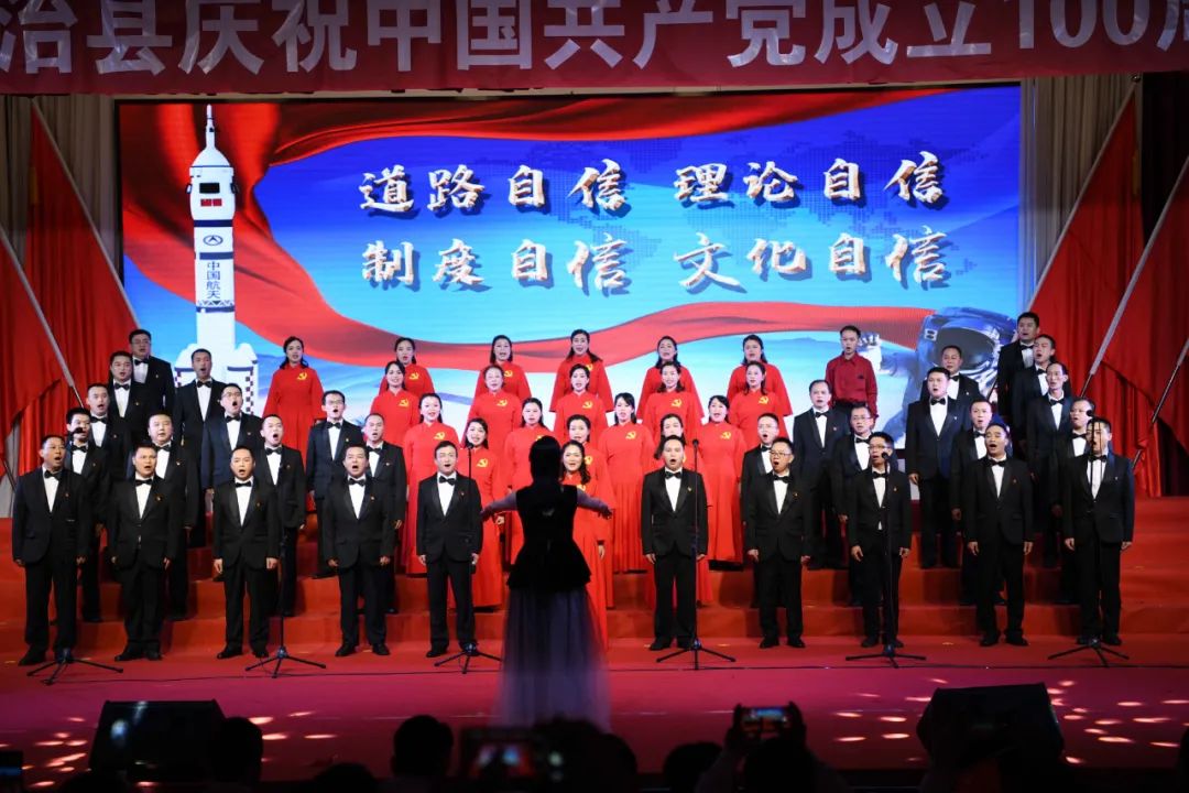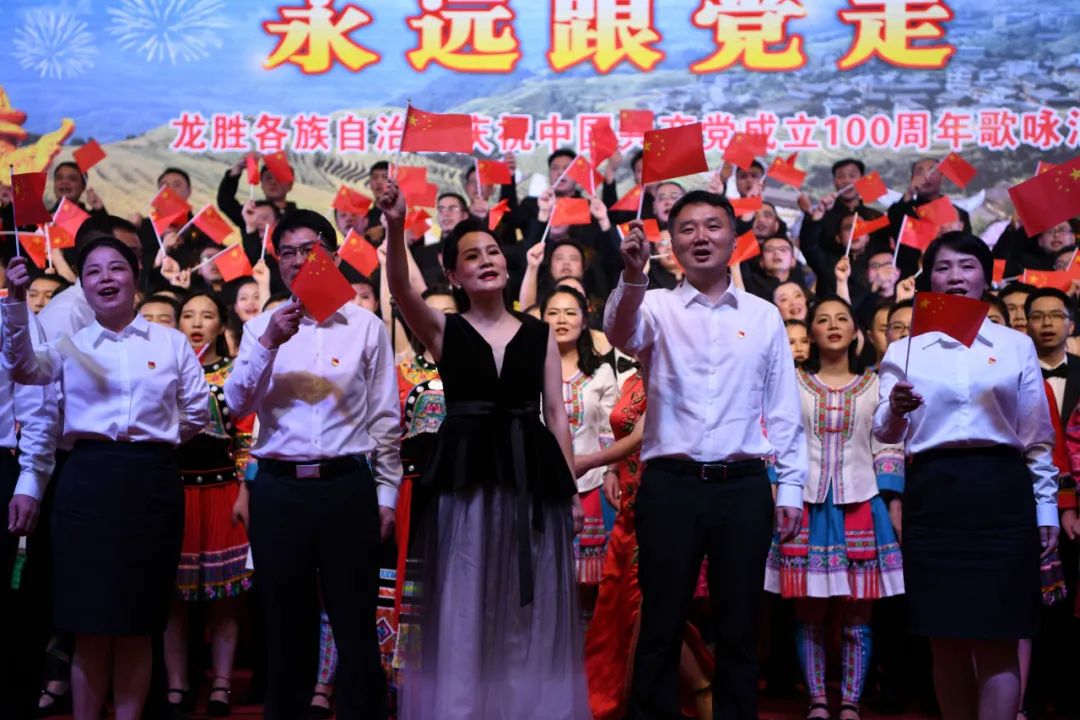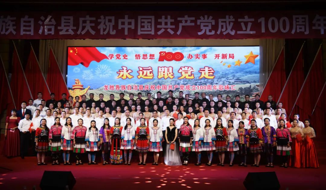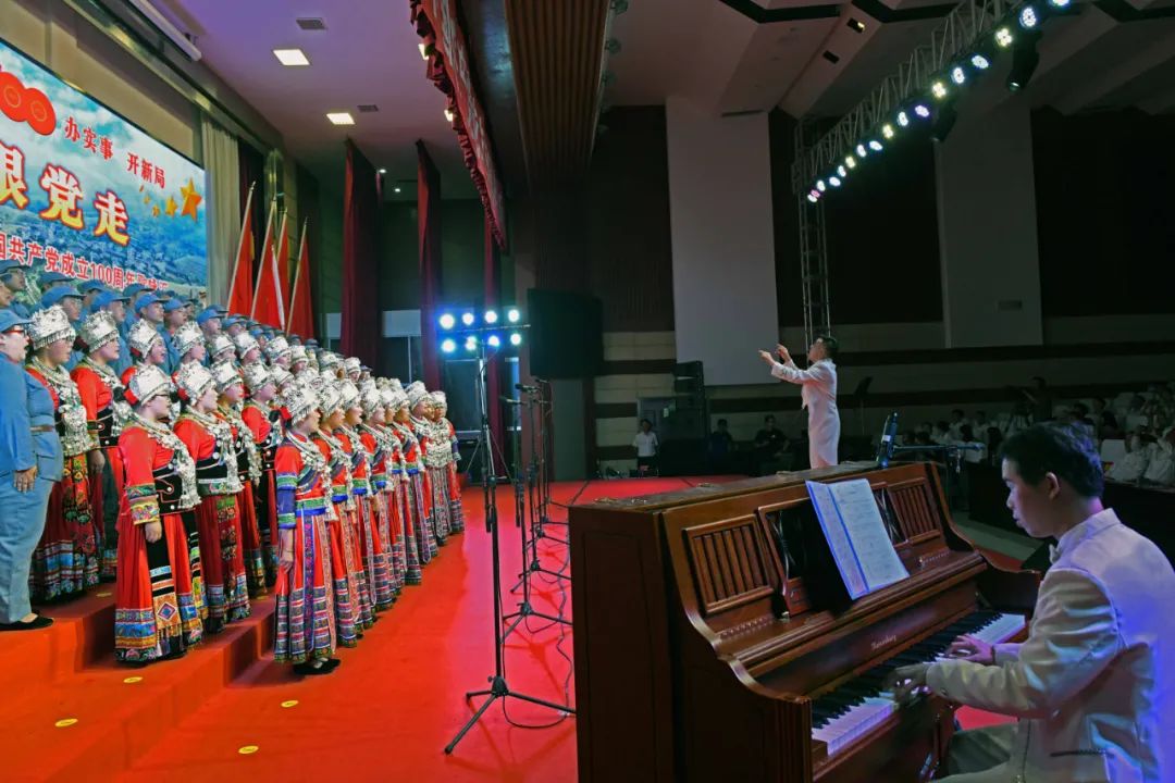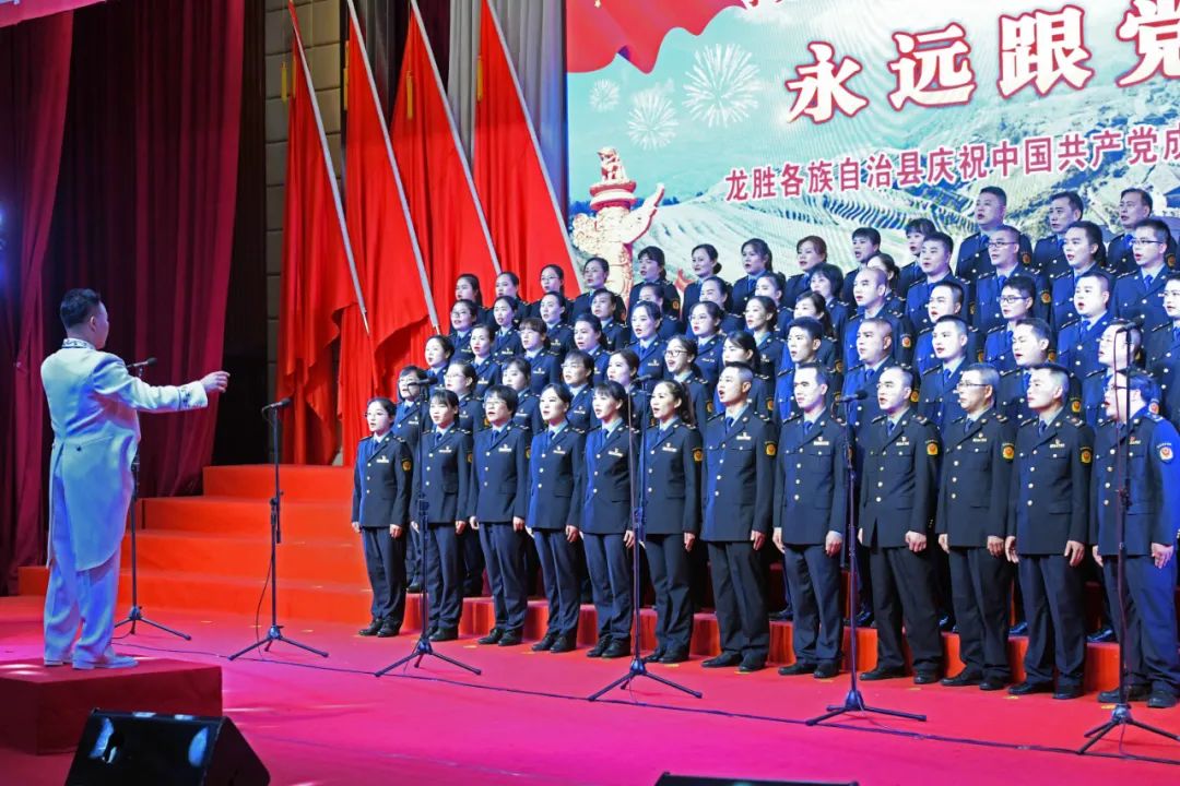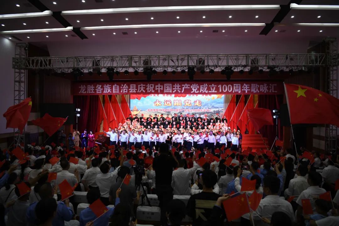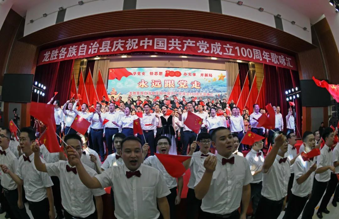 6月28日晚,龙胜各族自治县在县委党校会议中心举办庆祝中国共产党成立100周年歌咏汇。歌咏汇上的合唱队伍是在27日举行的全县歌咏比赛中精选出的优秀代表。县委主要负责人雷陈、自治县县长黄强、县人大常委会主任粟海英、县政协主席杨桂姬等在家的县四家班子领导与千余名干部群众在现场观看演出。