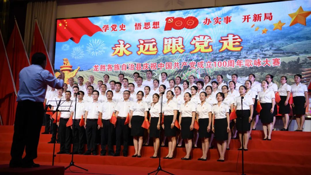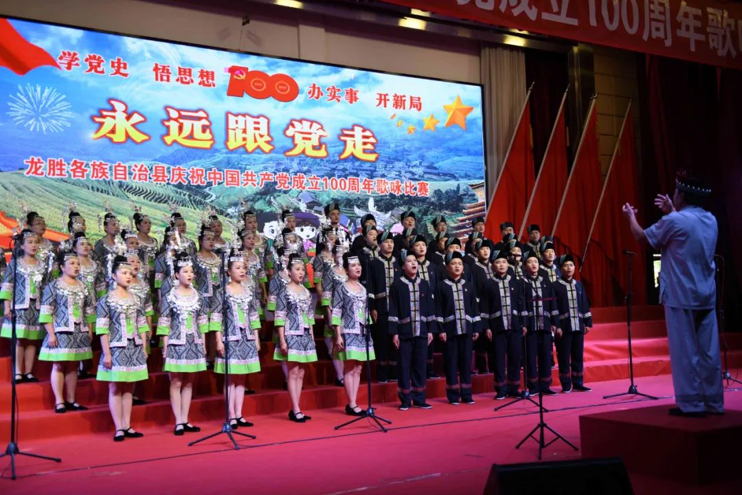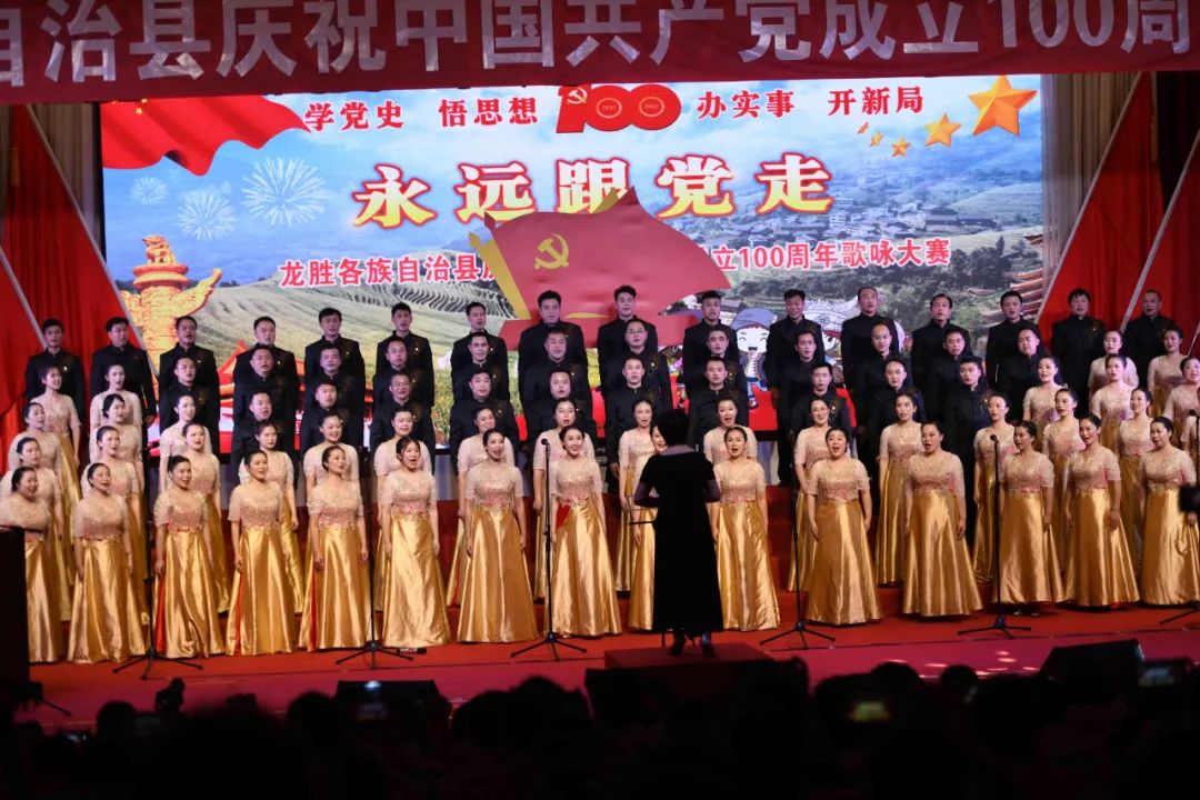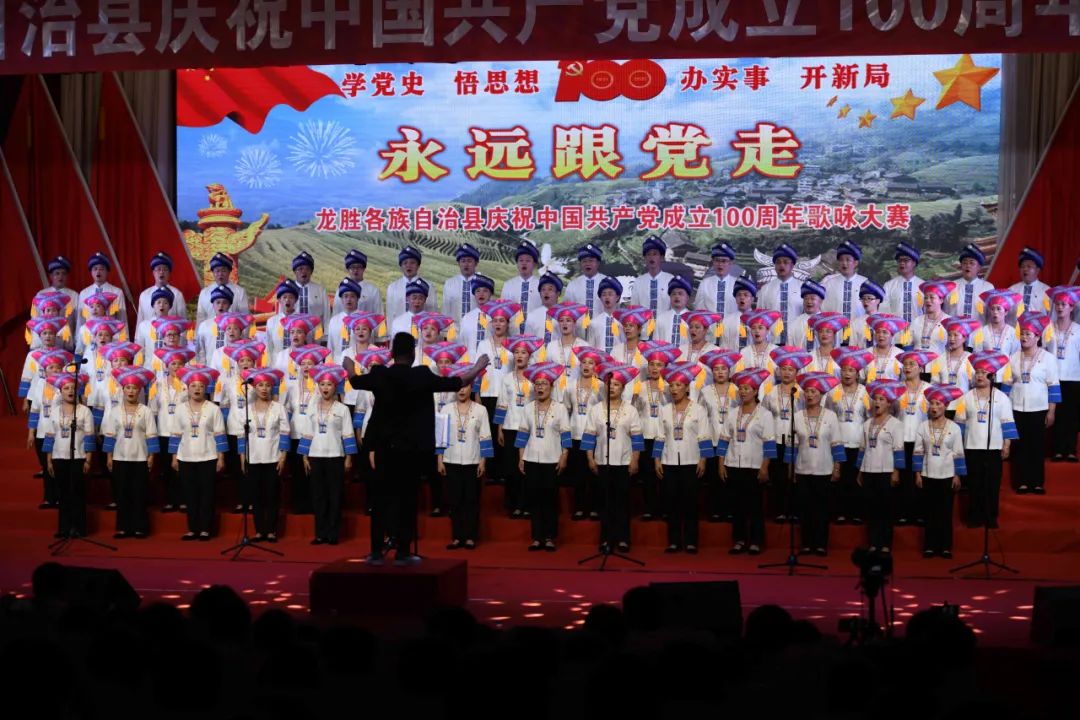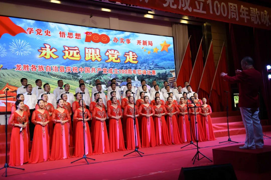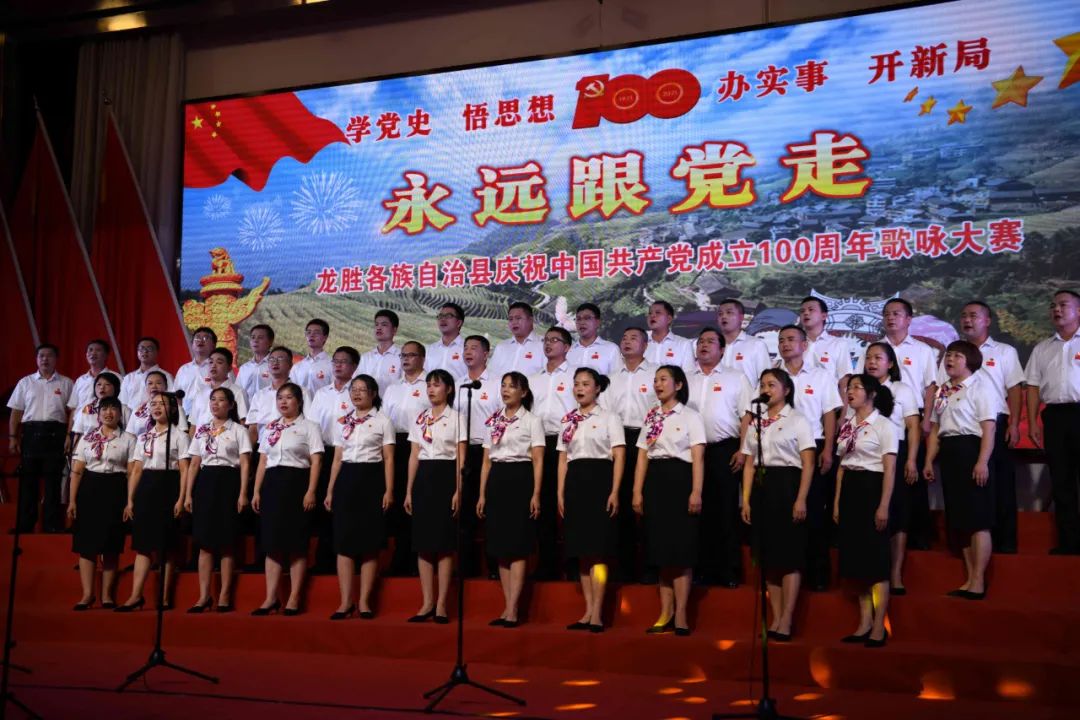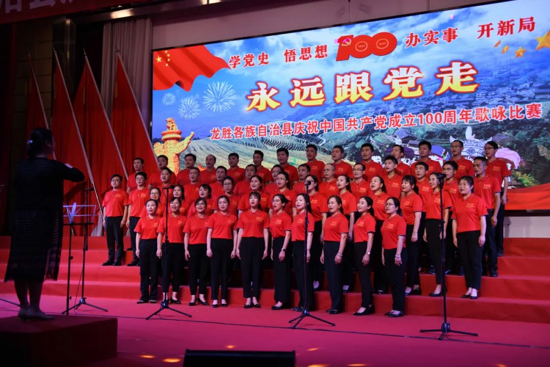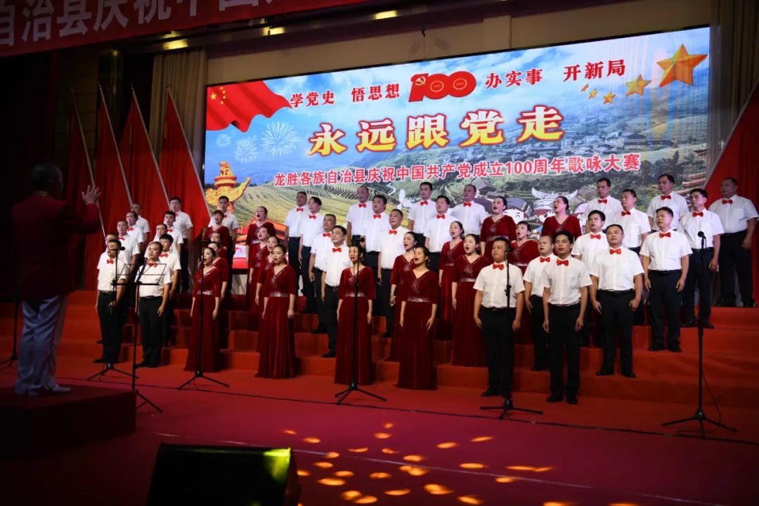 据悉,6月27日,我县举办庆祝中国共产党成立100周年歌咏比赛,来自县委办、县政府、各乡镇、县直各单位及企业等组成的40支合唱队参加比赛。在比赛中,各参赛队伍着装整齐,精神饱满,用嘹亮动听的歌声展示全县各条战线各民族领导干部良好的精神风貌,唱出了各族干部群众热爱中国共产党、热爱祖国、热爱龙胜的真挚感情,唱出了建设壮美广西、共圆复兴梦想的壮志豪情!