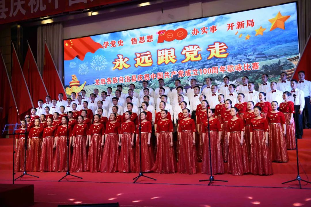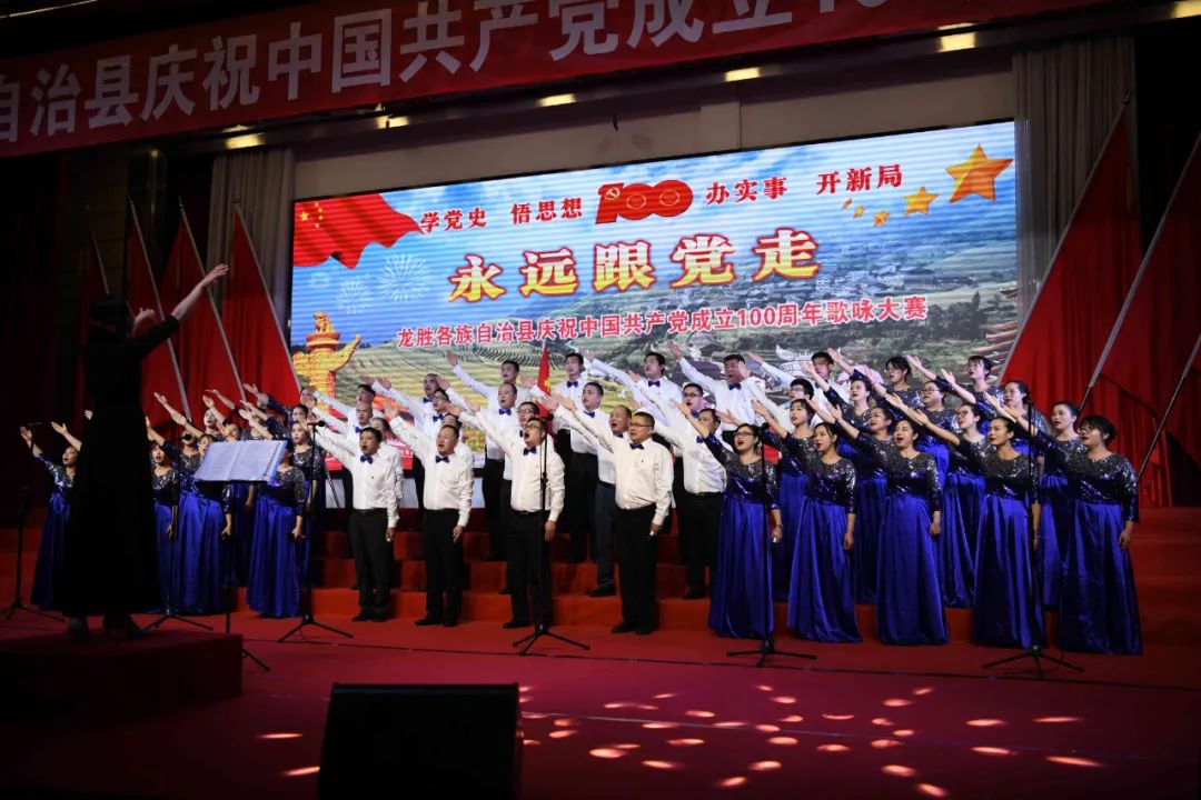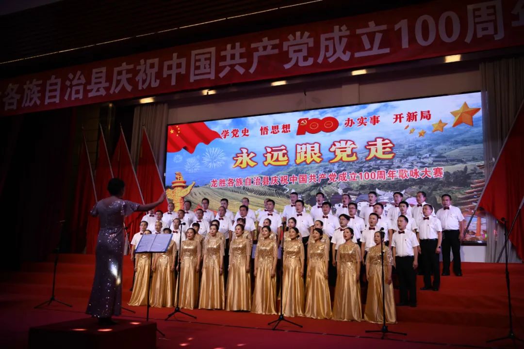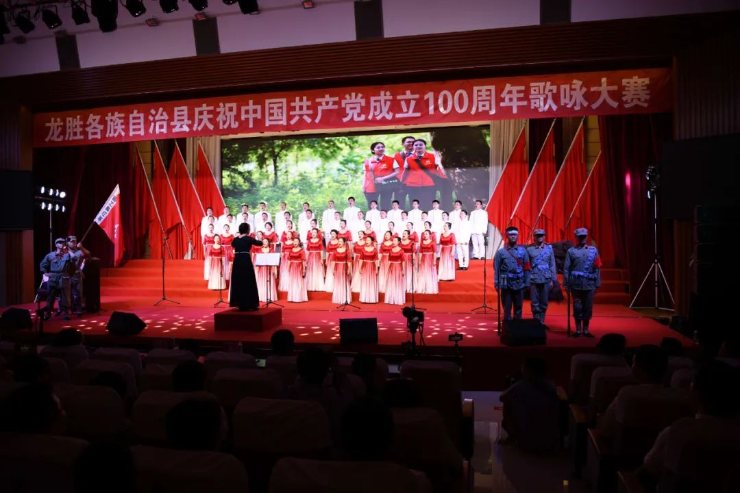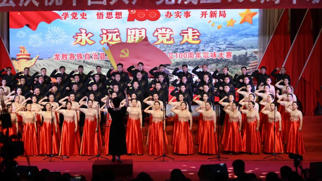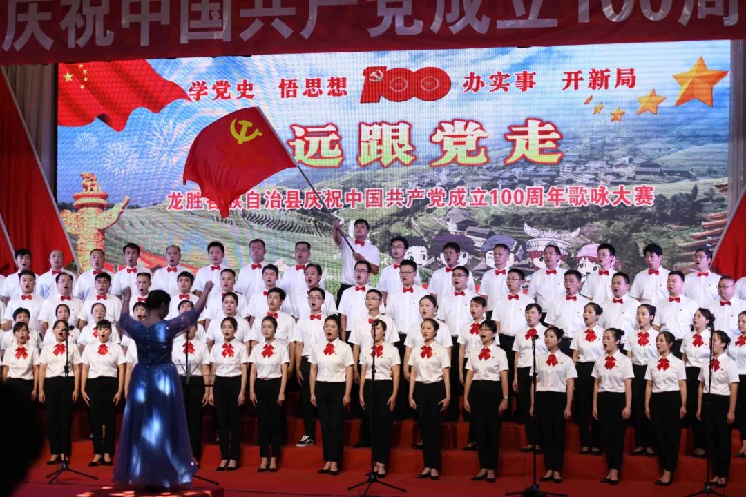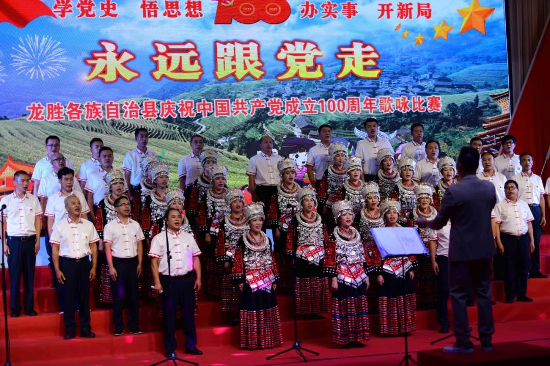 据悉,6月27日,我县举办庆祝中国共产党成立100周年歌咏比赛,来自县委办、县政府、各乡镇、县直各单位及企业等组成的40支合唱队参加比赛。在比赛中,各参赛队伍着装整齐,精神饱满,用嘹亮动听的歌声展示全县各条战线各民族领导干部良好的精神风貌,唱出了各族干部群众热爱中国共产党、热爱祖国、热爱龙胜的真挚感情,唱出了建设壮美广西、共圆复兴梦想的壮志豪情!