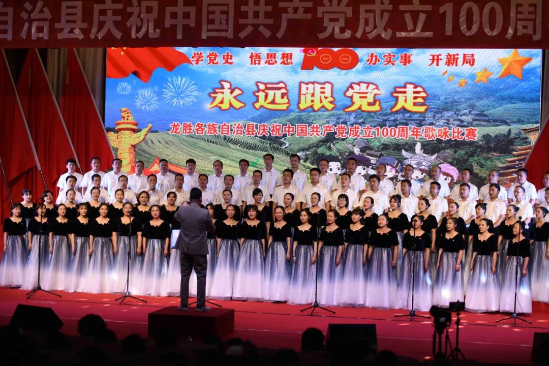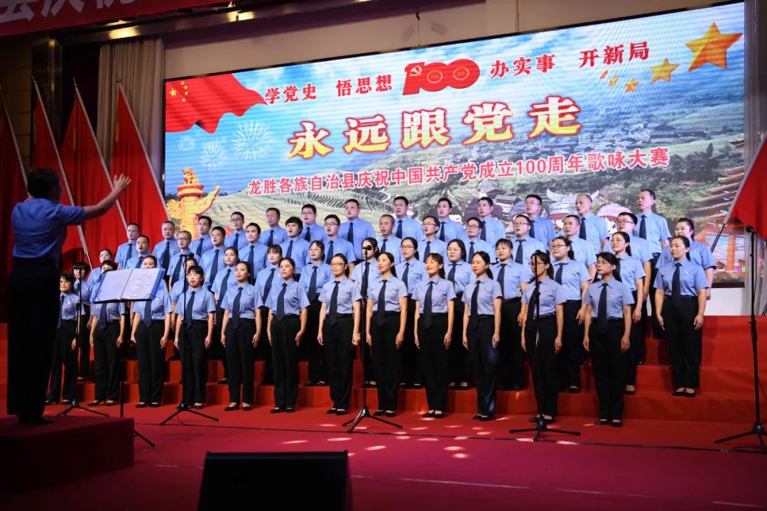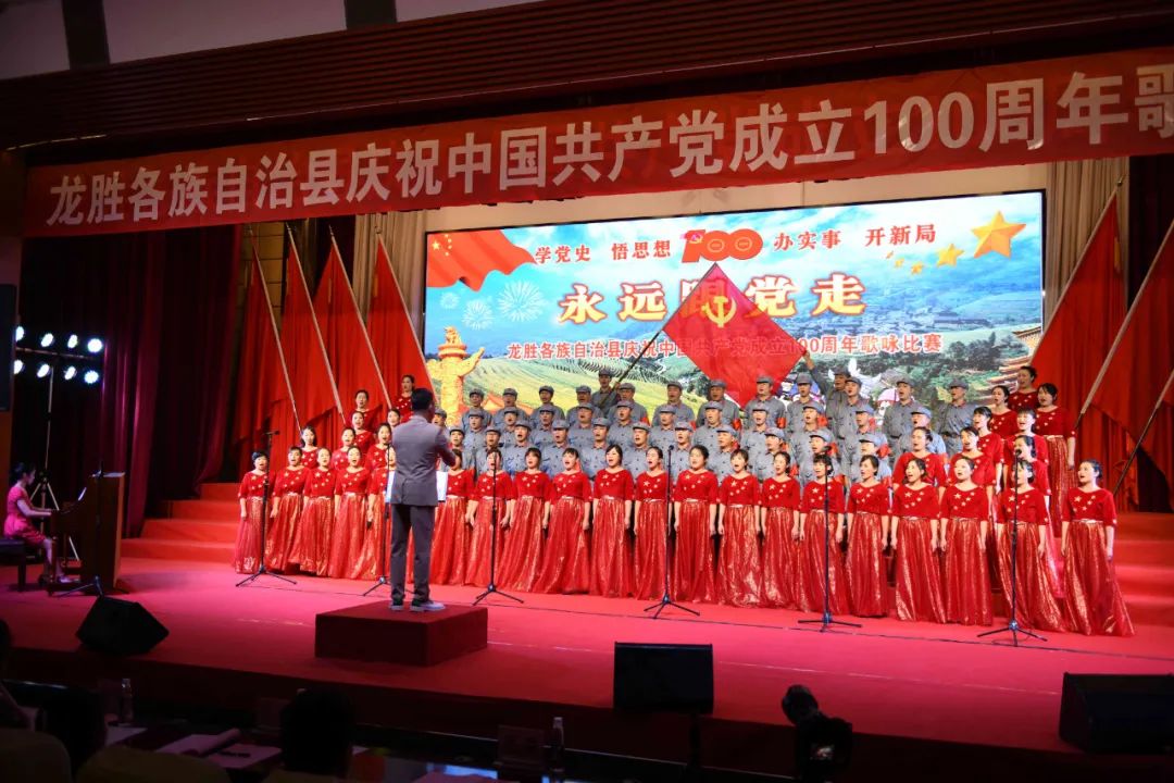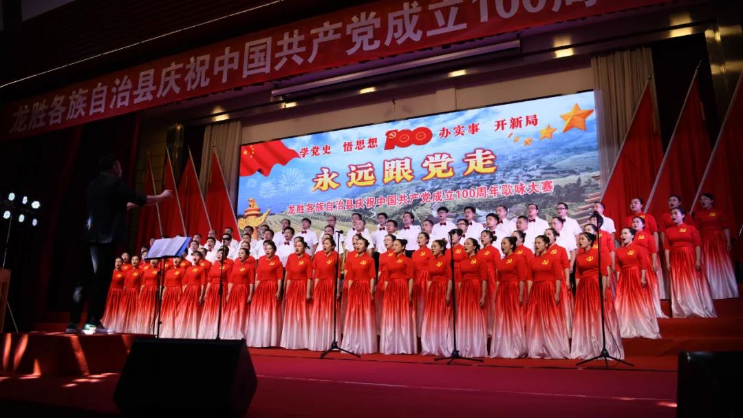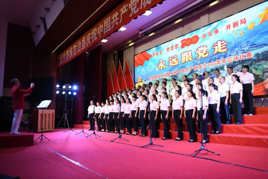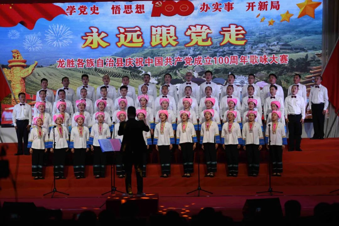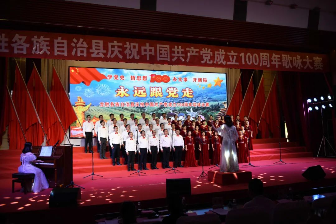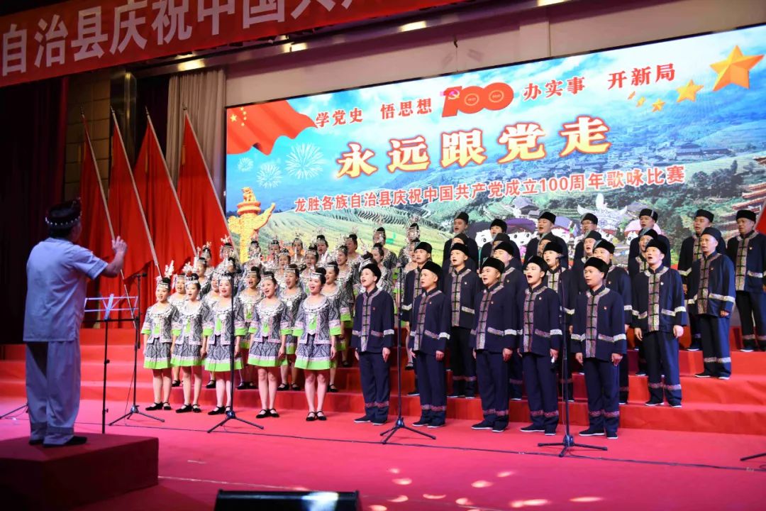 据悉,6月27日,我县举办庆祝中国共产党成立100周年歌咏比赛,来自县委办、县政府、各乡镇、县直各单位及企业等组成的40支合唱队参加比赛。在比赛中,各参赛队伍着装整齐,精神饱满,用嘹亮动听的歌声展示全县各条战线各民族领导干部良好的精神风貌,唱出了各族干部群众热爱中国共产党、热爱祖国、热爱龙胜的真挚感情,唱出了建设壮美广西、共圆复兴梦想的壮志豪情!