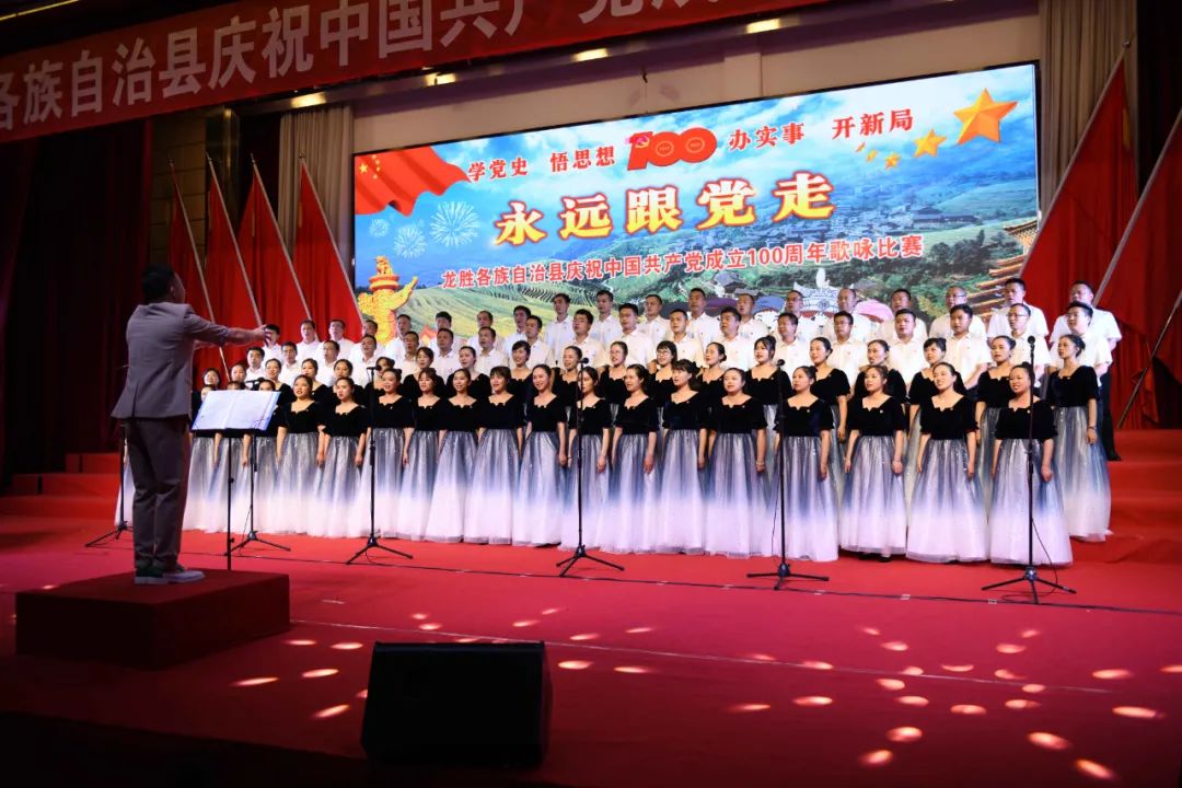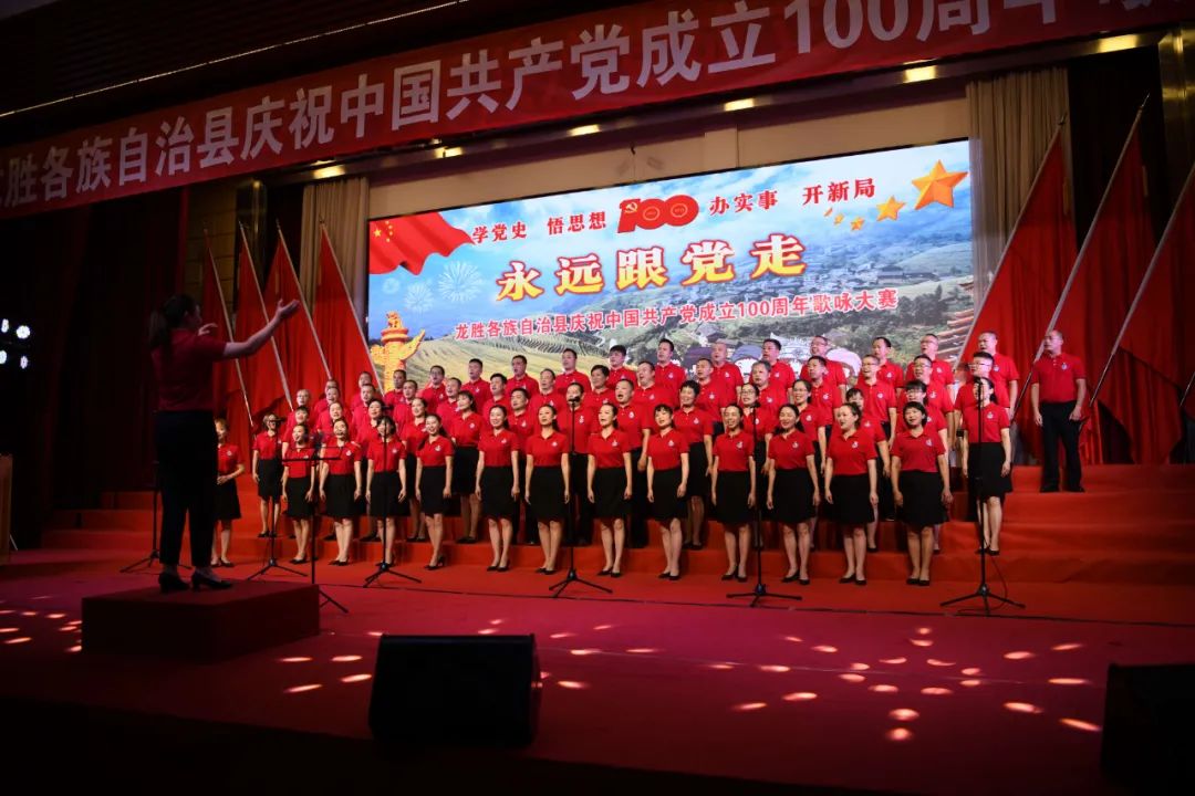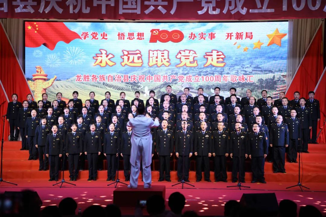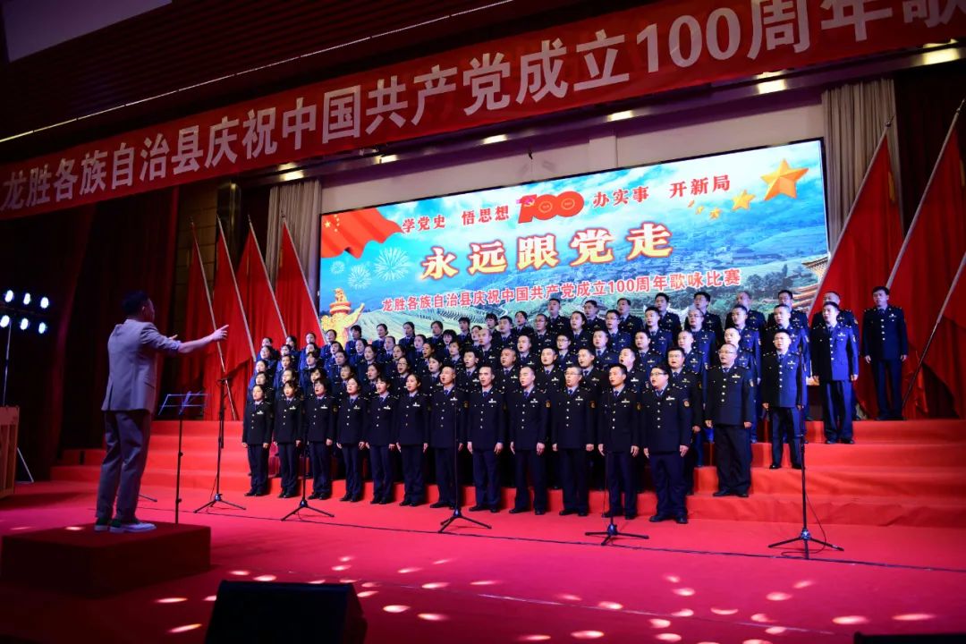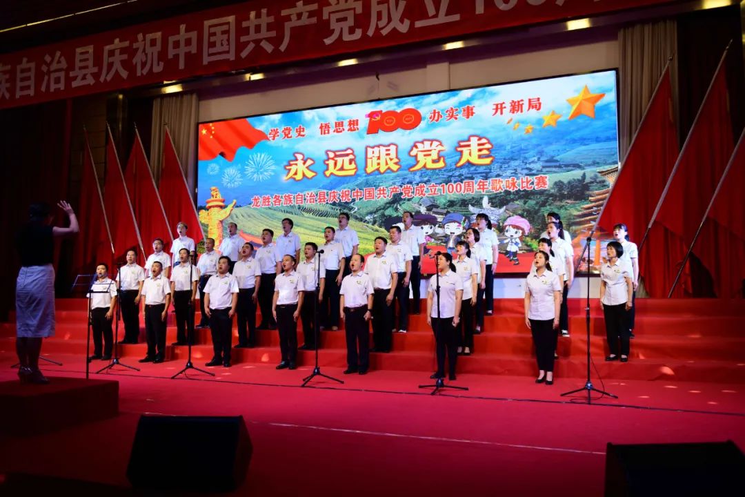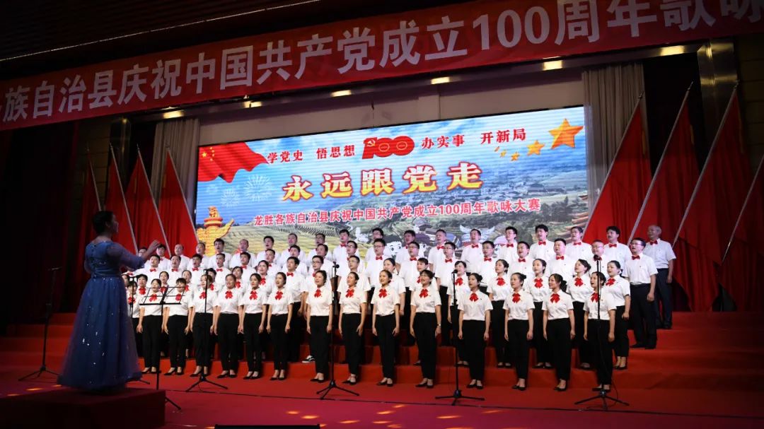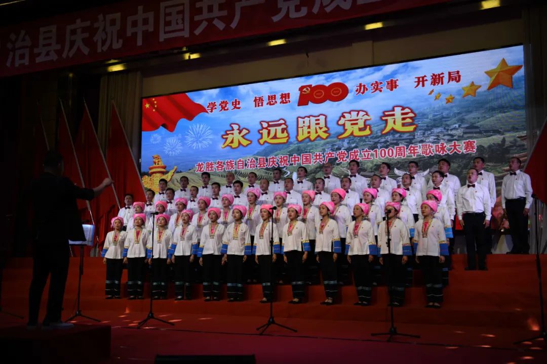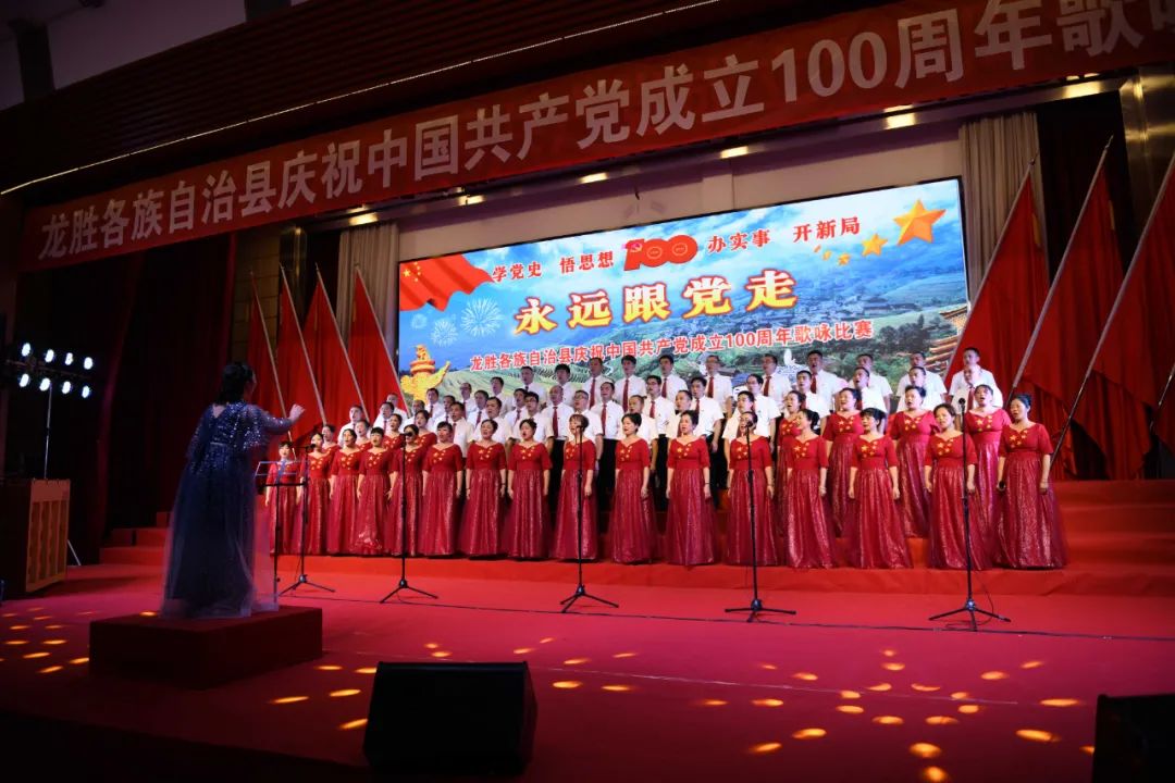 据悉,6月27日,我县举办庆祝中国共产党成立100周年歌咏比赛,来自县委办、县政府、各乡镇、县直各单位及企业等组成的40支合唱队参加比赛。在比赛中,各参赛队伍着装整齐,精神饱满,用嘹亮动听的歌声展示全县各条战线各民族领导干部良好的精神风貌,唱出了各族干部群众热爱中国共产党、热爱祖国、热爱龙胜的真挚感情,唱出了建设壮美广西、共圆复兴梦想的壮志豪情!
