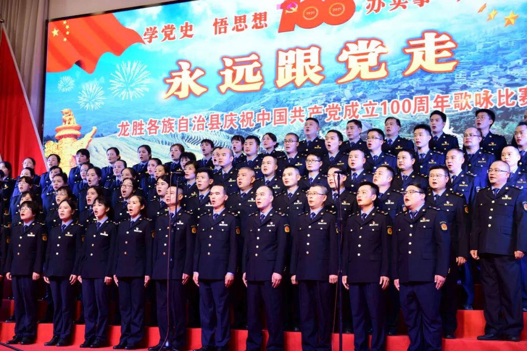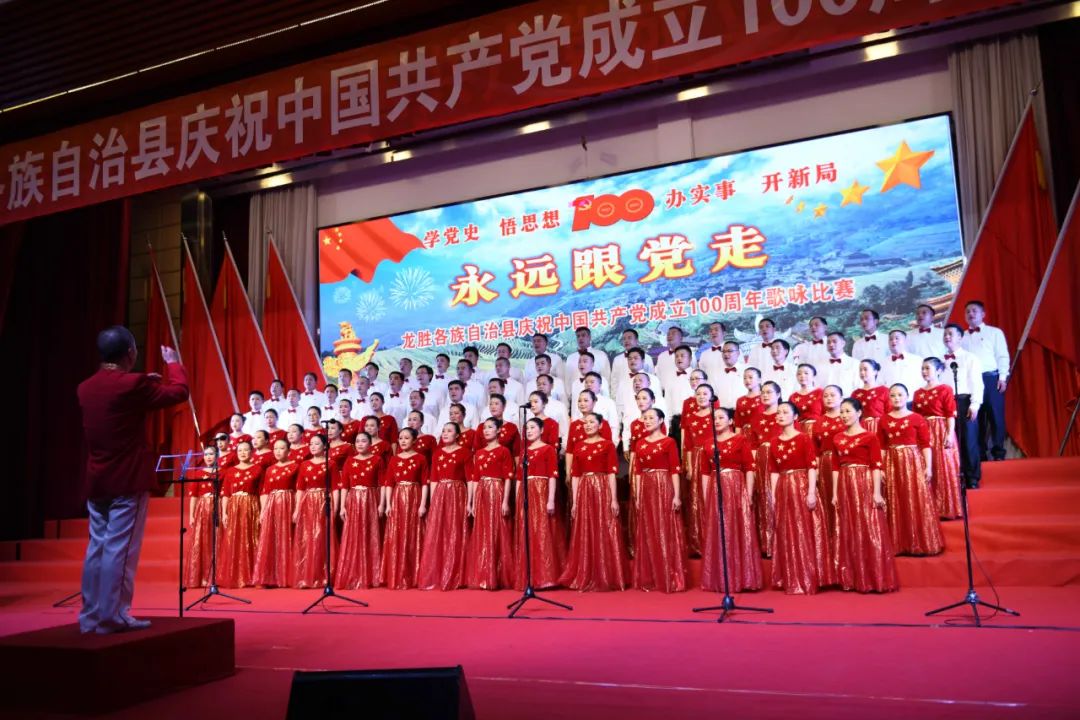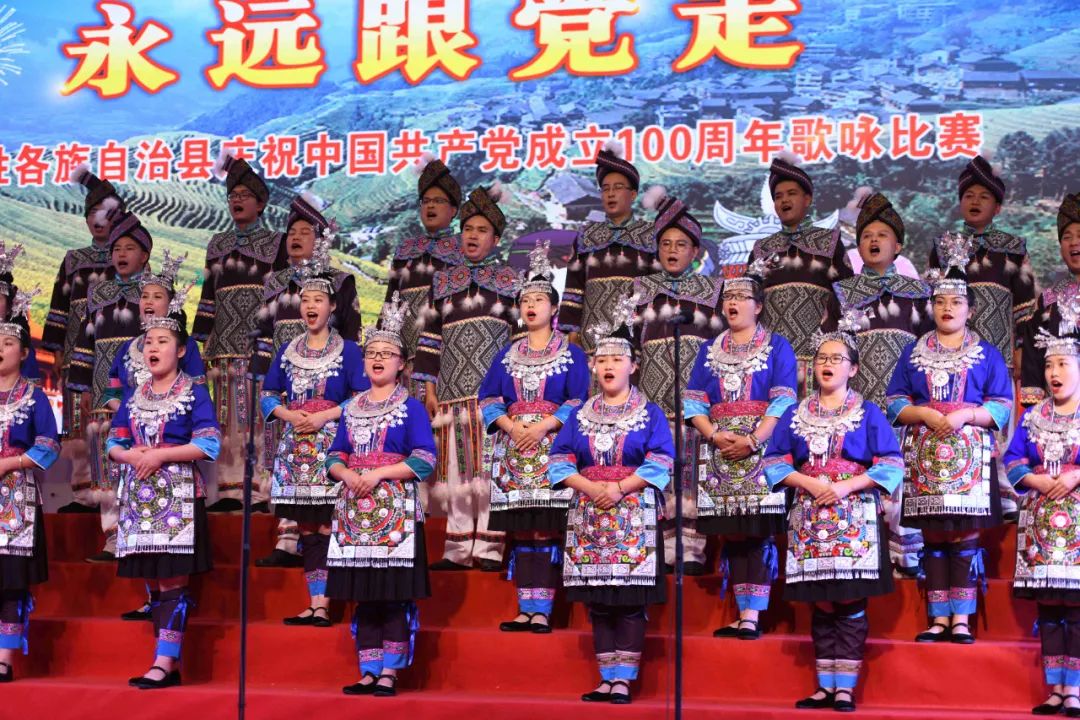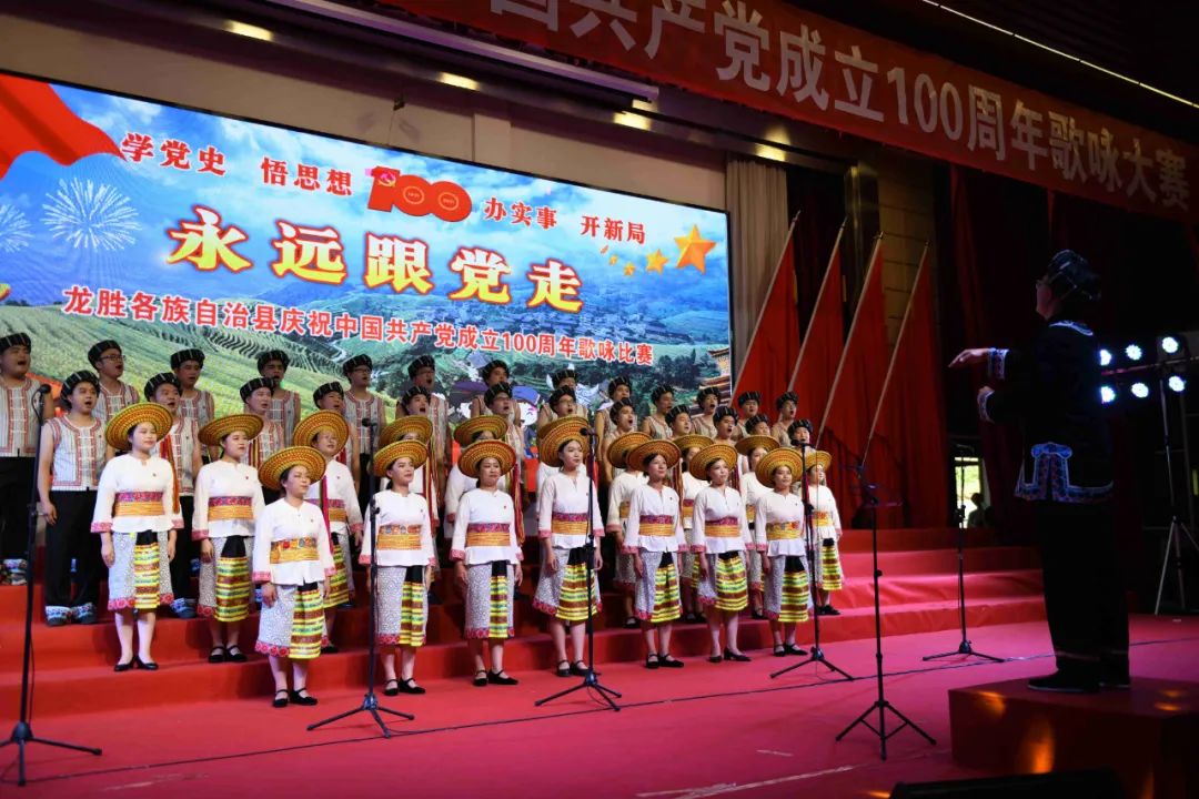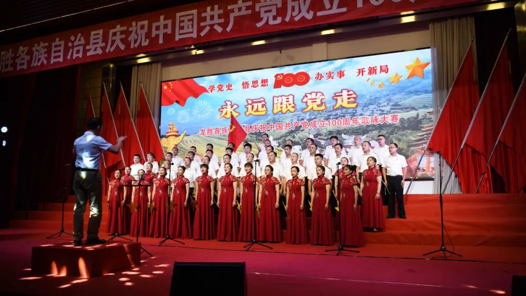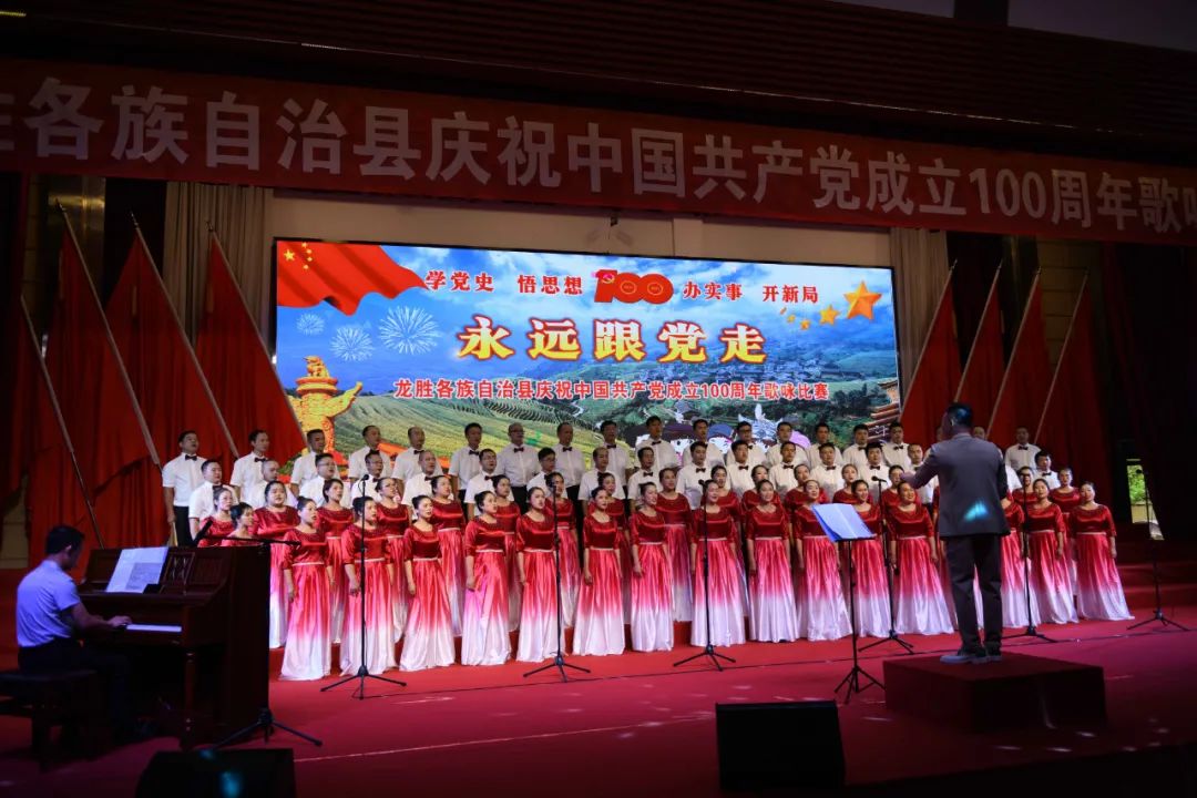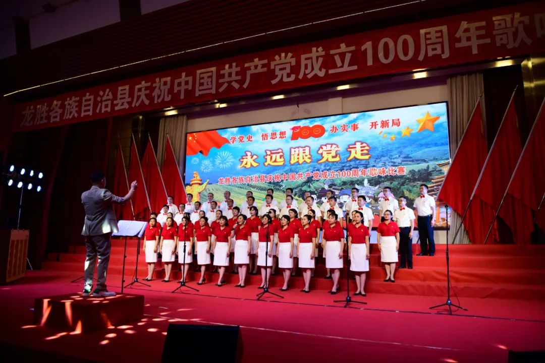 据悉,6月27日,我县举办庆祝中国共产党成立100周年歌咏比赛,来自县委办、县政府、各乡镇、县直各单位及企业等组成的40支合唱队参加比赛。在比赛中,各参赛队伍着装整齐,精神饱满,用嘹亮动听的歌声展示全县各条战线各民族领导干部良好的精神风貌,唱出了各族干部群众热爱中国共产党、热爱祖国、热爱龙胜的真挚感情,唱出了建设壮美广西、共圆复兴梦想的壮志豪情!