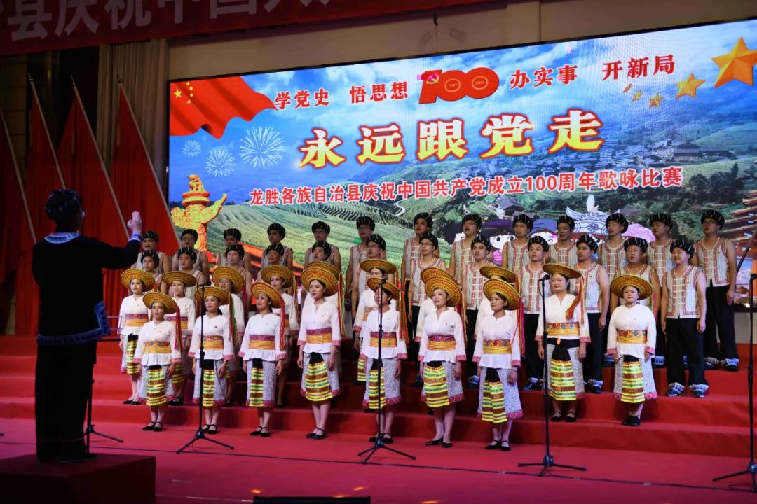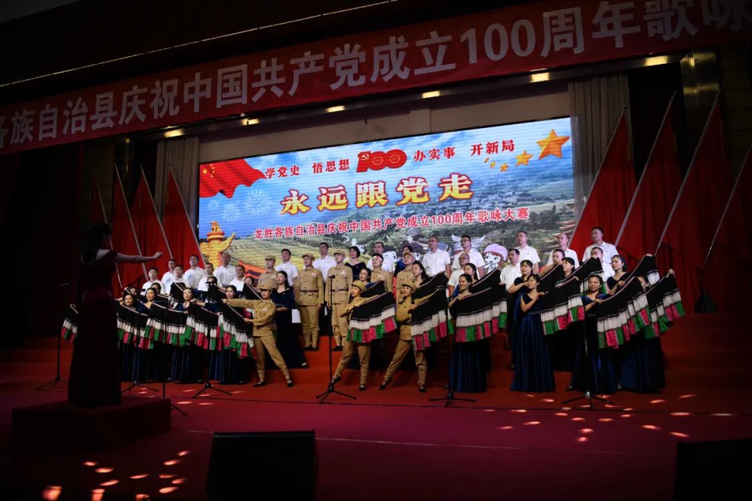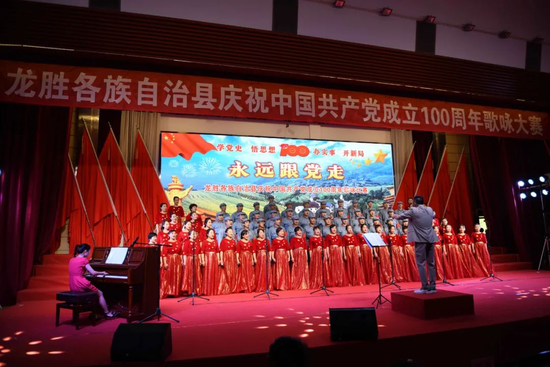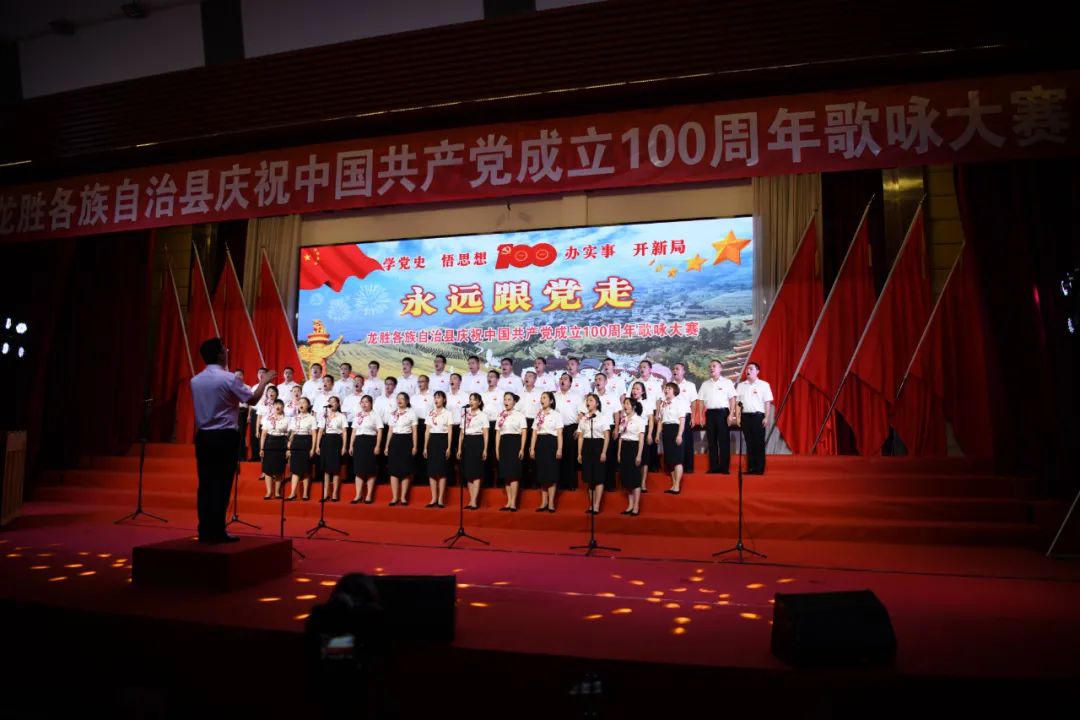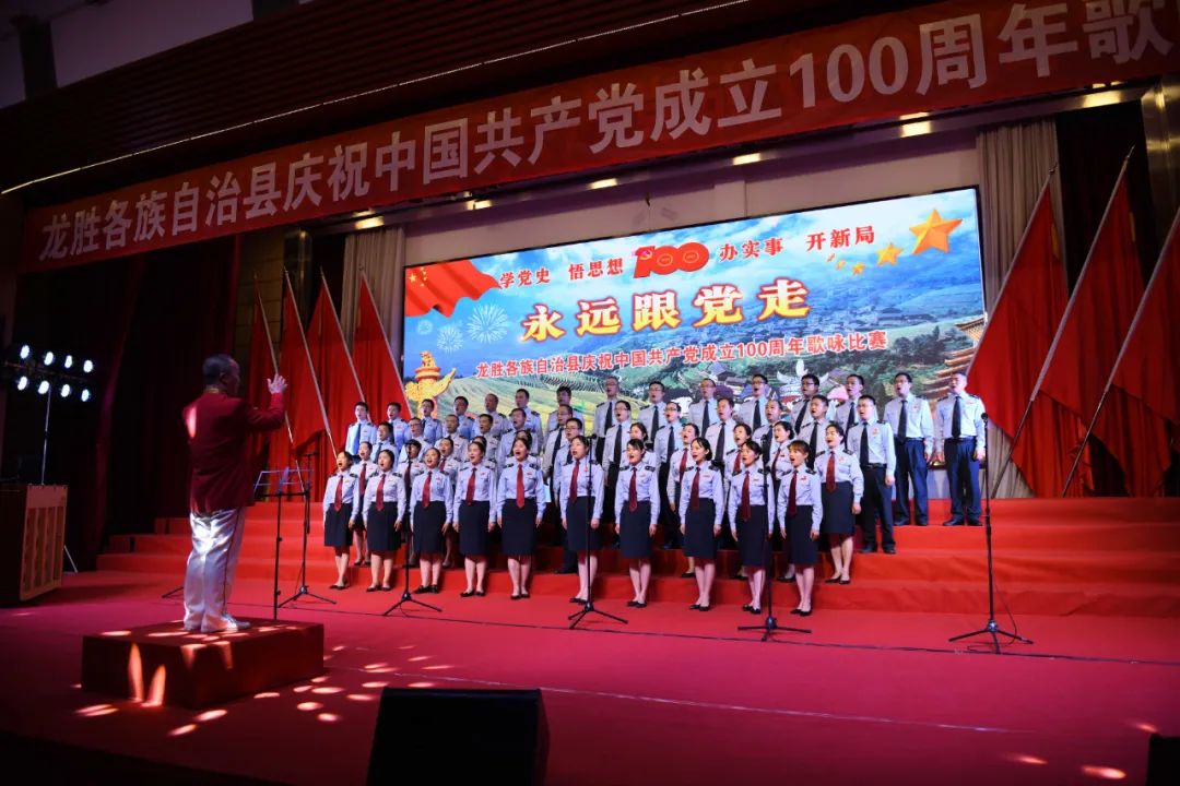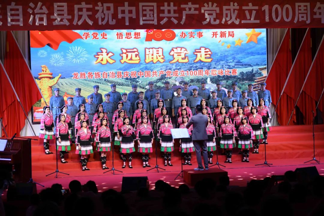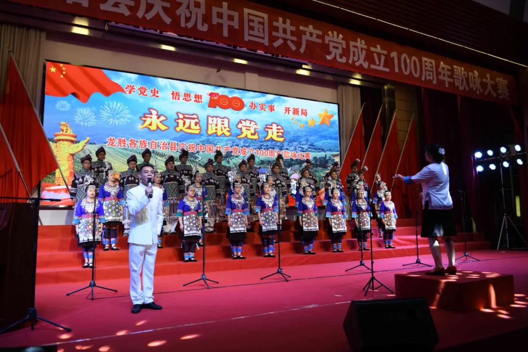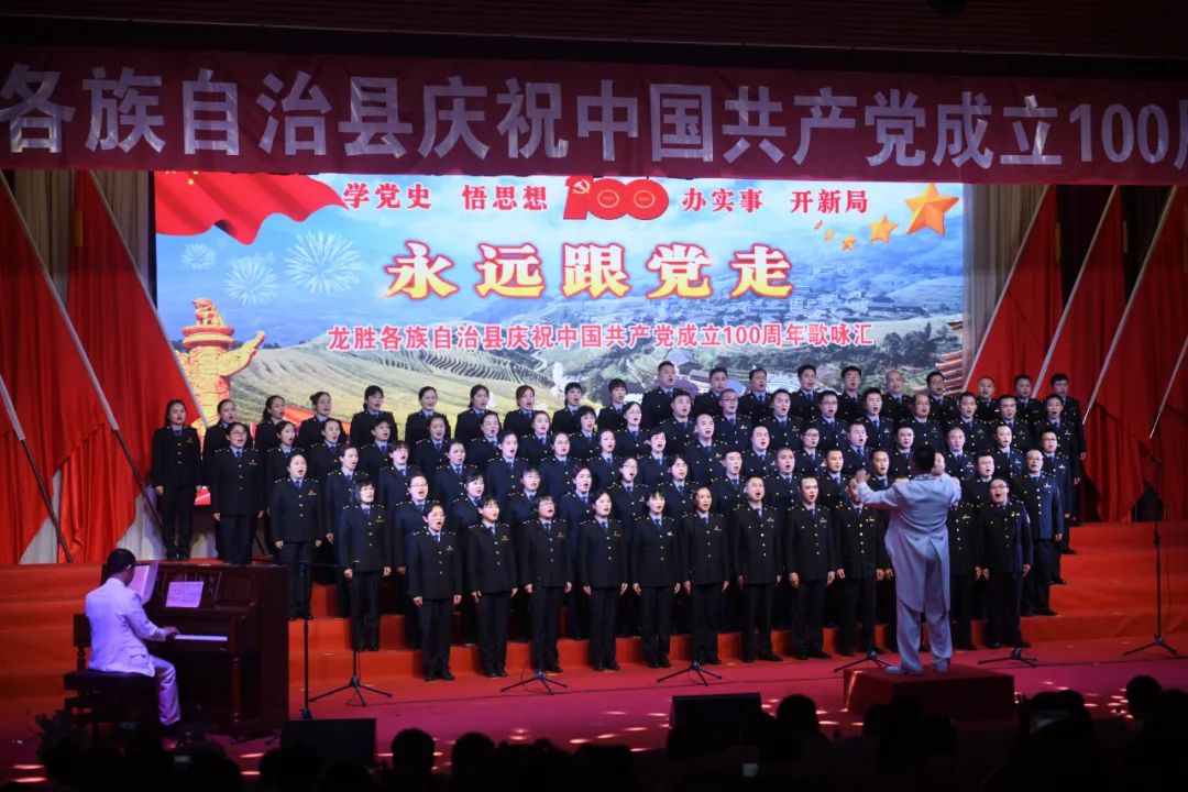 据悉,6月27日,我县举办庆祝中国共产党成立100周年歌咏比赛,来自县委办、县政府、各乡镇、县直各单位及企业等组成的40支合唱队参加比赛。在比赛中,各参赛队伍着装整齐,精神饱满,用嘹亮动听的歌声展示全县各条战线各民族领导干部良好的精神风貌,唱出了各族干部群众热爱中国共产党、热爱祖国、热爱龙胜的真挚感情,唱出了建设壮美广西、共圆复兴梦想的壮志豪情!