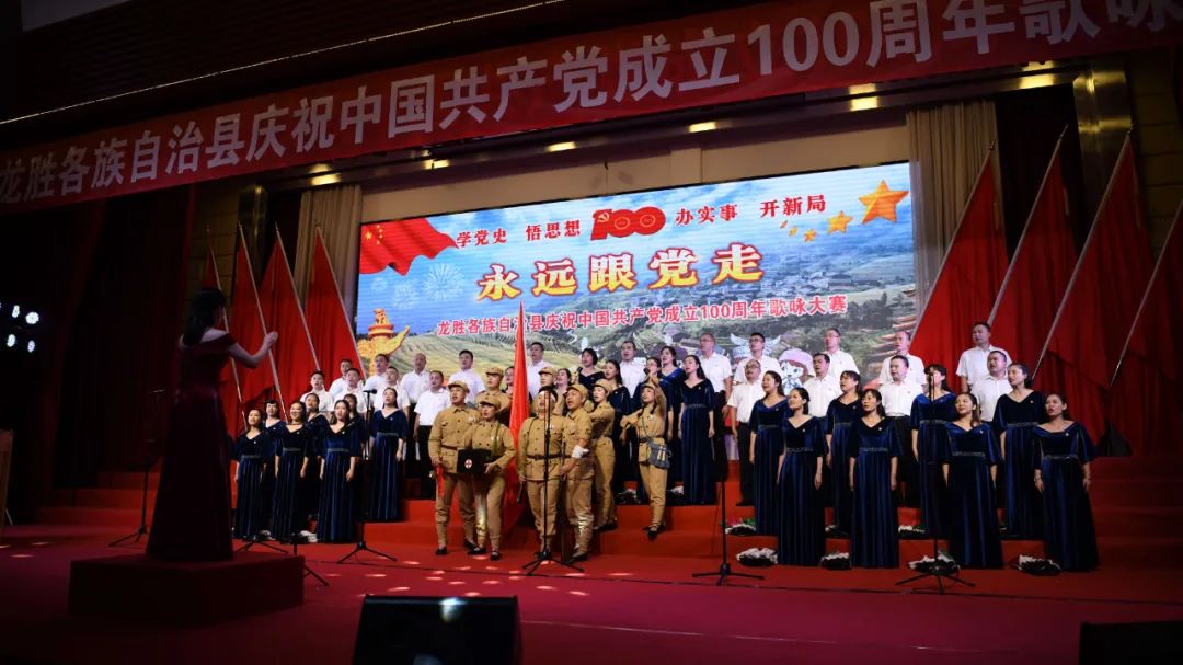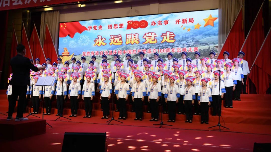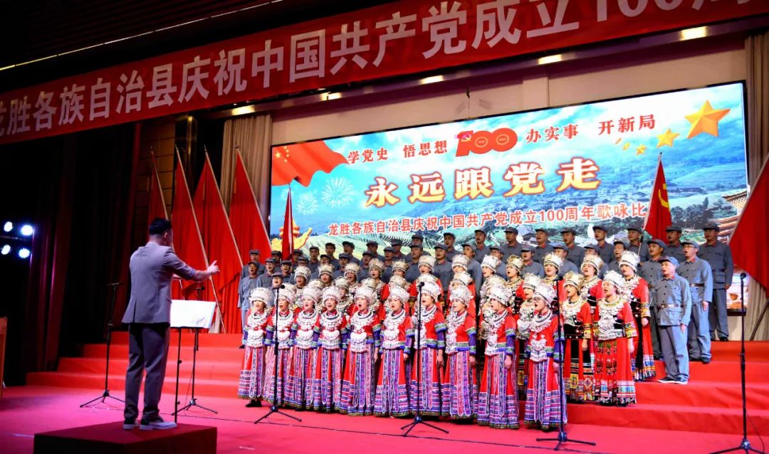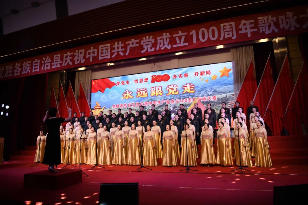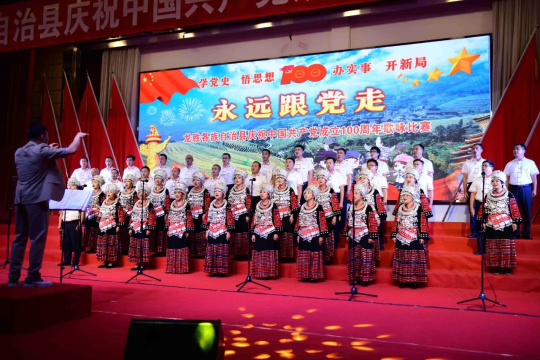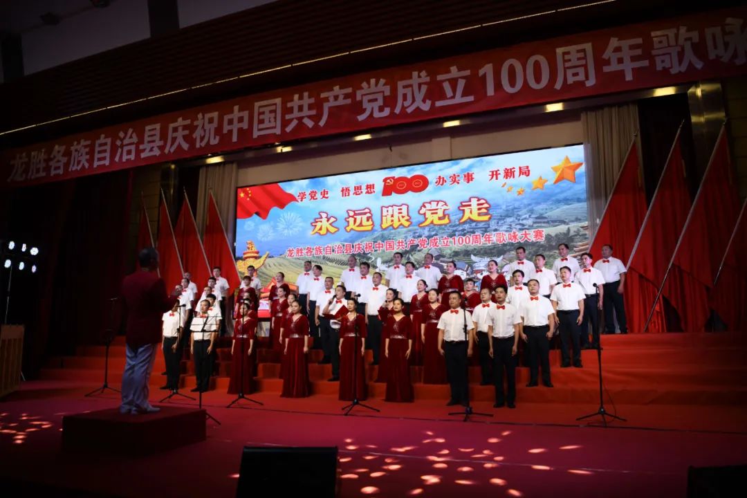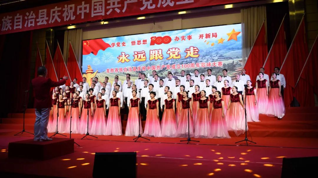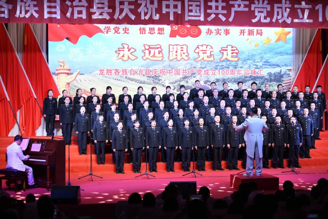 据悉,6月27日,我县举办庆祝中国共产党成立100周年歌咏比赛,来自县委办、县政府、各乡镇、县直各单位及企业等组成的40支合唱队参加比赛。在比赛中,各参赛队伍着装整齐,精神饱满,用嘹亮动听的歌声展示全县各条战线各民族领导干部良好的精神风貌,唱出了各族干部群众热爱中国共产党、热爱祖国、热爱龙胜的真挚感情,唱出了建设壮美广西、共圆复兴梦想的壮志豪情!