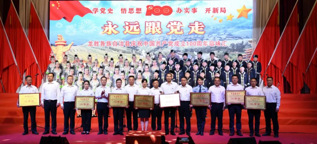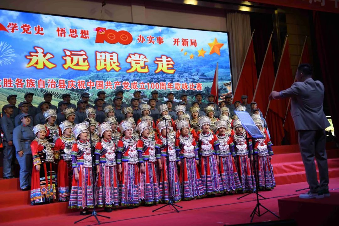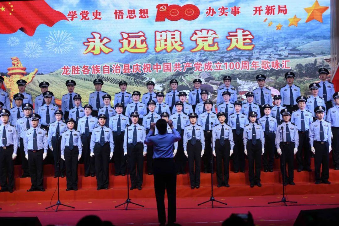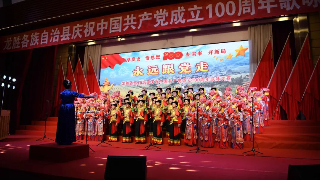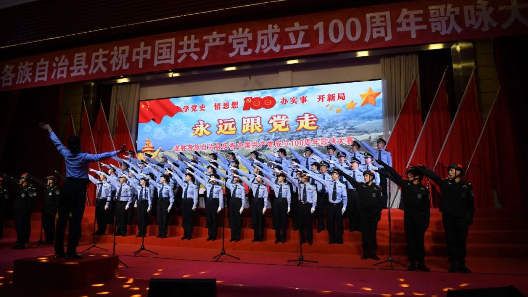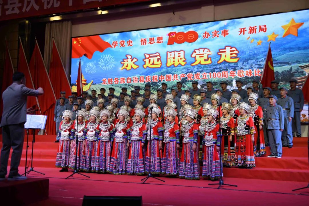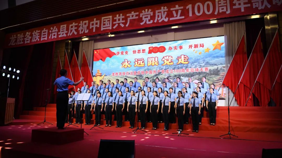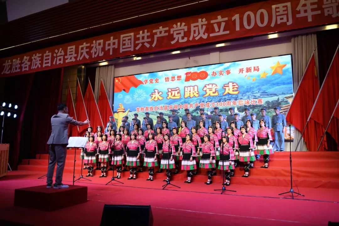 据悉,6月27日,我县举办庆祝中国共产党成立100周年歌咏比赛,来自县委办、县政府、各乡镇、县直各单位及企业等组成的40支合唱队参加比赛。在比赛中,各参赛队伍着装整齐,精神饱满,用嘹亮动听的歌声展示全县各条战线各民族领导干部良好的精神风貌,唱出了各族干部群众热爱中国共产党、热爱祖国、热爱龙胜的真挚感情,唱出了建设壮美广西、共圆复兴梦想的壮志豪情!