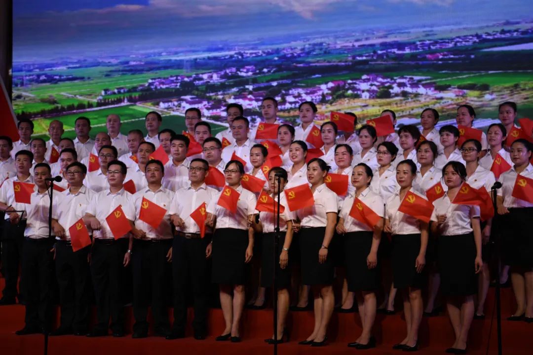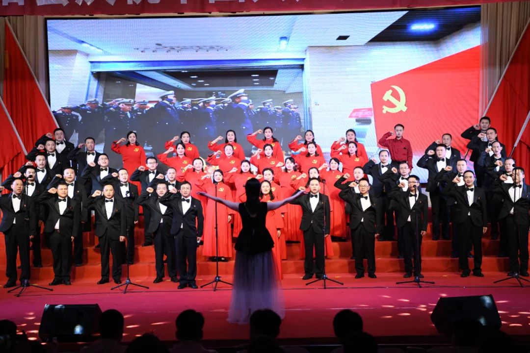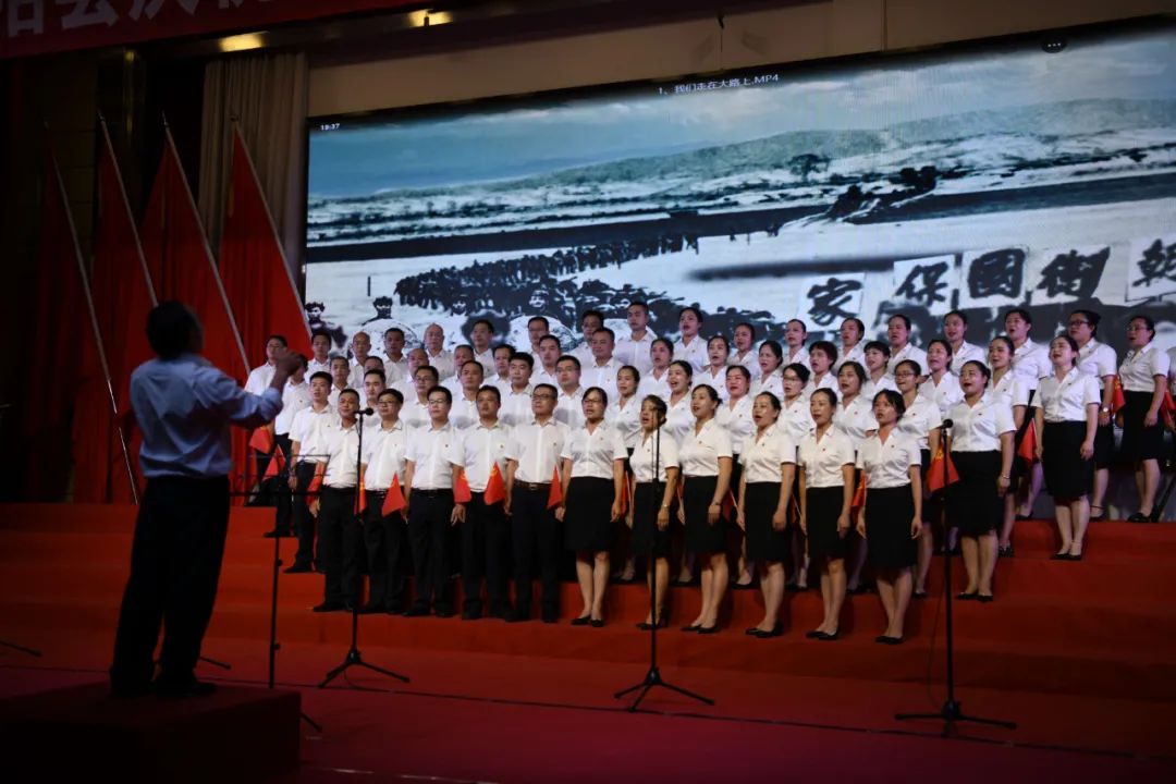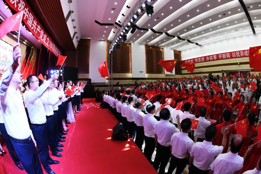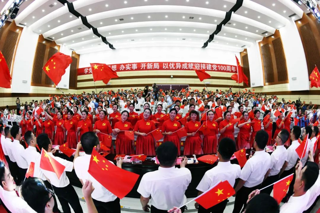 建党百年把歌唱,赓续血脉话沧桑。在28日歌咏汇结束之前,全场高举五星红旗,用发自内心的歌声纵情高唱《歌唱祖国》,大家激情满怀,深情表达感党恩、跟党走的坚定决心和对建党百年的美好祝福,让这些壮美的歌声永远流淌在生命里,让使命和担当永远牢记在共产党人心坎上!