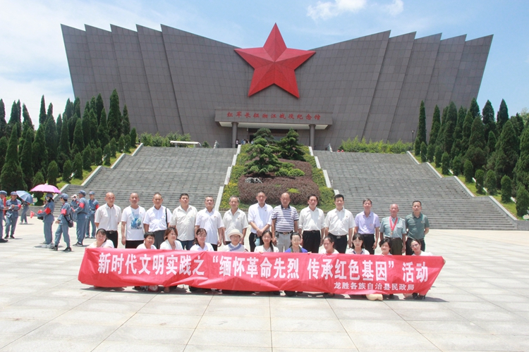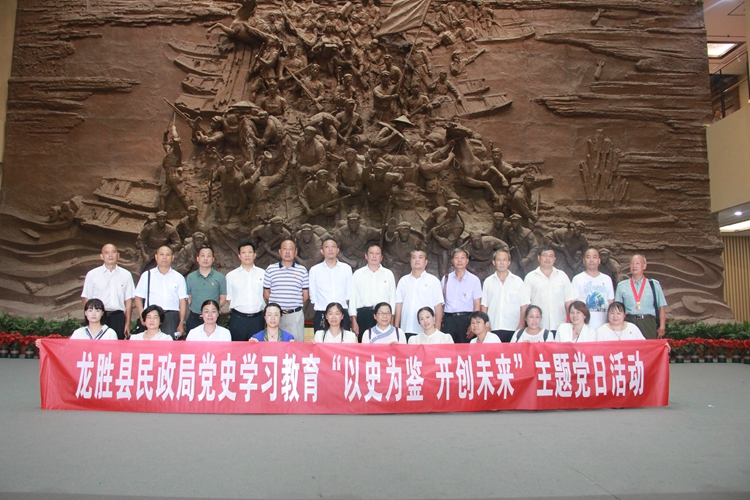 为深入学习贯彻习近平总书记在庆祝中国共产党成立100周年大会上的重要讲话精神,2021年7月9日,龙胜县民政局党支部组织全局党员(含退休党员、入党积极分子)赴全州县红军长征湘江战役纪念馆开展“以史为鉴 开创未来”主题党日活动。重温党的光辉历史,缅怀革命先烈,接受革命传统教育。