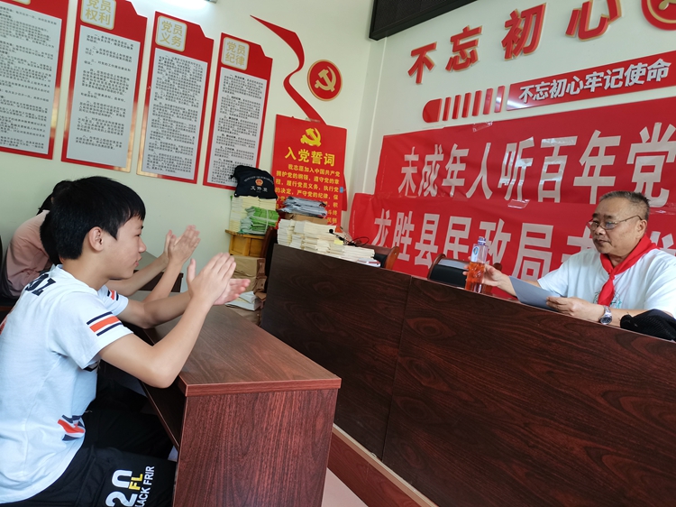 活动由忆艰苦岁月——听老人讲红色故事、感百年恩情——长卷绘画少年祝福、和铭记历史——红歌献给共产党三个环节组成,展现了龙胜留守儿童薪火相传,不忘党恩的精神面貌。活动邀请了76岁退休老人张爷爷来给大家讲述,聪明的王二小,小英雄雨来,耳熟能详的鸡毛信,勇敢的刘胡兰等,一个个抗日小英雄的故事从爷爷的讲述中缓缓说出,小朋友们一个个都听得津津有味,不时还向爷爷提出问题。一个个红色故事触动人心,同学们在红色传奇英雄人物的事迹中感受到了共产党人的伟大精神,纷纷表示要向英雄人物学习,爱家爱国,努力学习,珍惜现在来之不易的幸福生活,用实际行动报效祖国。