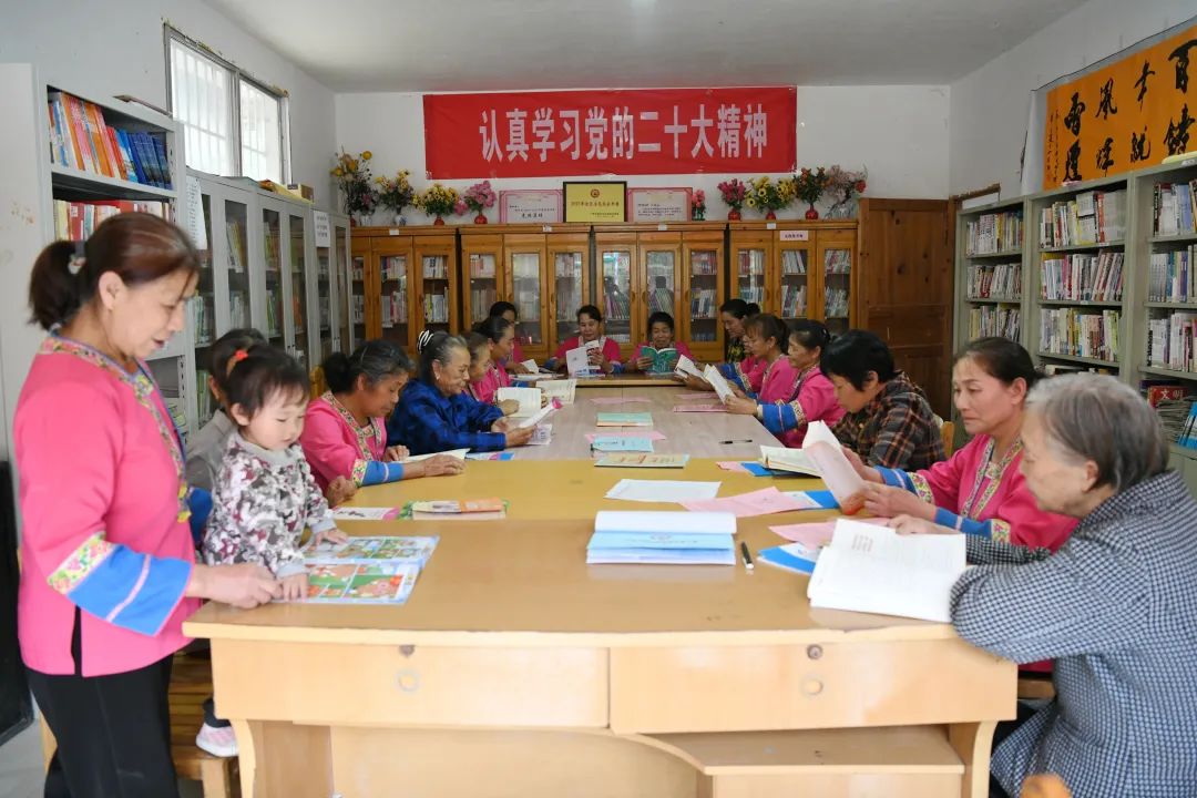 4月18日,龙胜镇金结村妇女们齐聚农村书屋,开展阅读活动。