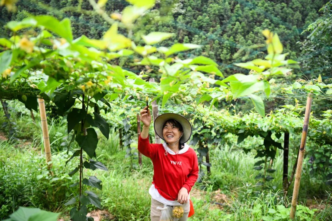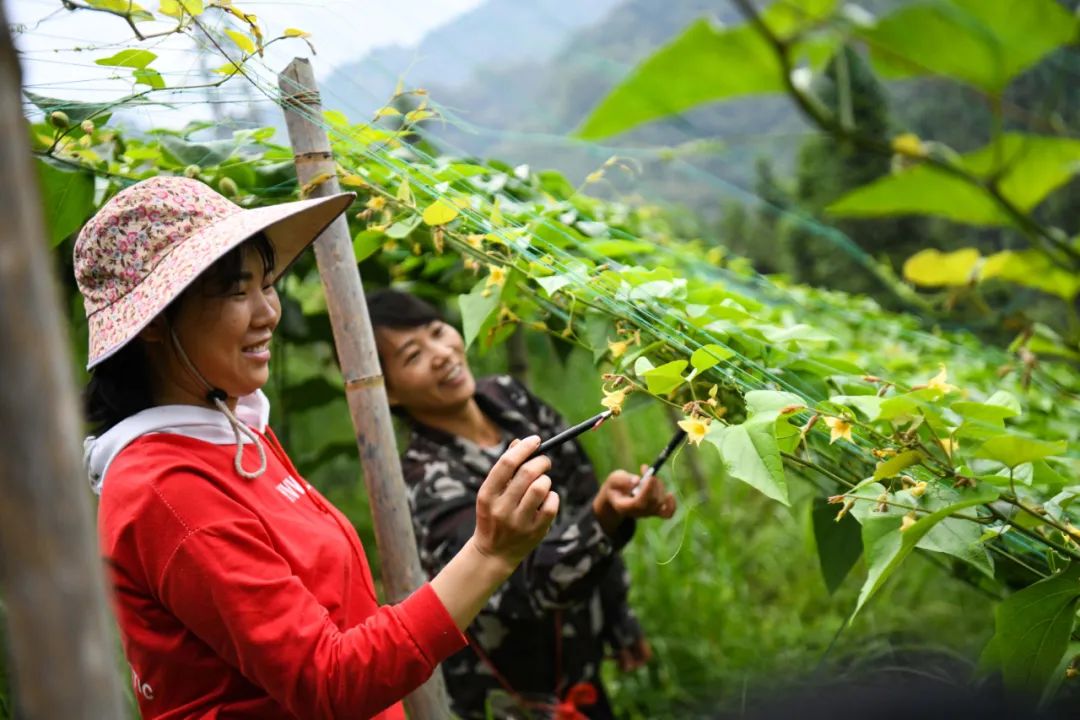 “今年扩种后的罗汉果面积比较大,一个人忙活不过来,趁着天气好,就多请些人给罗汉果花进行人工授粉。”据谭建学介绍,他雇请周边村民来帮忙,当天,有20名村民到他的罗汉果地里进行人工授粉。