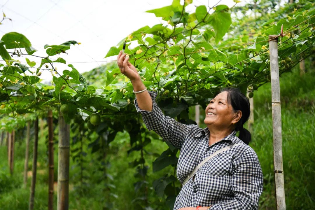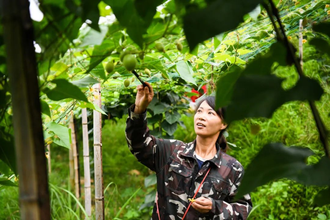 罗汉果花花期短,要想提高罗汉果的坐果率,必须在罗汉果花开花当天进行人工授粉。“现在每天早上6点我就要赶到地里进行人工授粉,到上午11点左右结束,再加上管护的时间,有时候忙到连吃饭都顾不上,累是挺累的,但是看着藤上挂着一个个绿油油的罗汉果,不论在地里待多久都觉得值了!”汗水已经浸湿了谭建学衣衫,他脸上尽是藏不住的笑意。