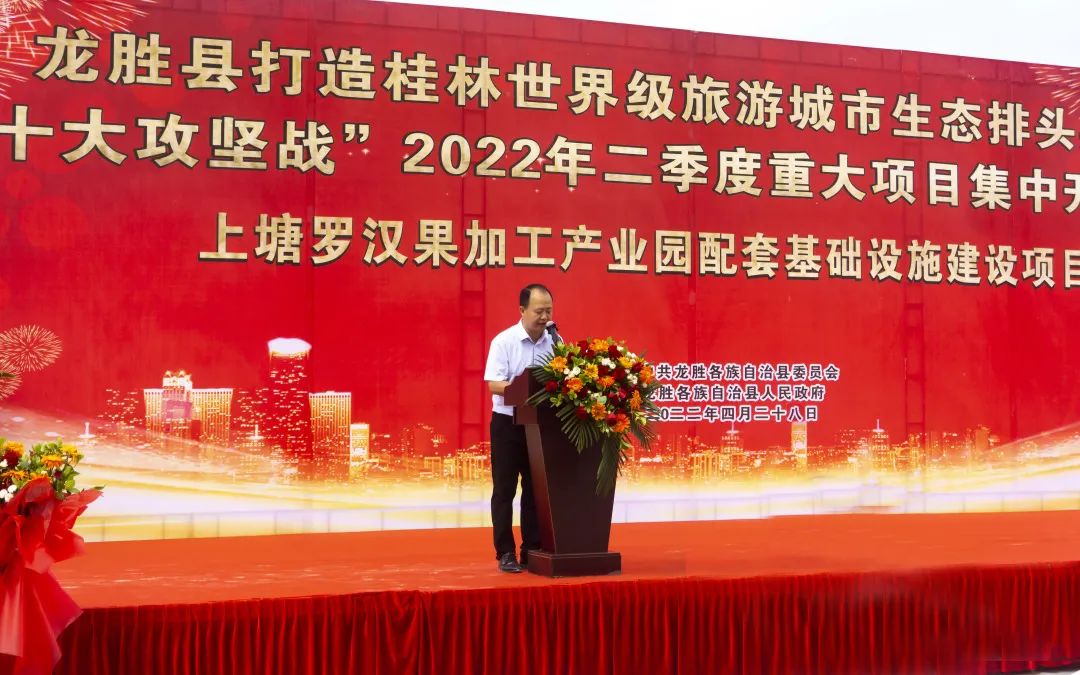 4月28日,在瓢里镇上塘村举行我县2022年第二季度重大项目——上塘罗汉果加工产业园配套基础设施建设项目开工仪式,县领导黄强、兰岚、曾瑞玉出席活动。
