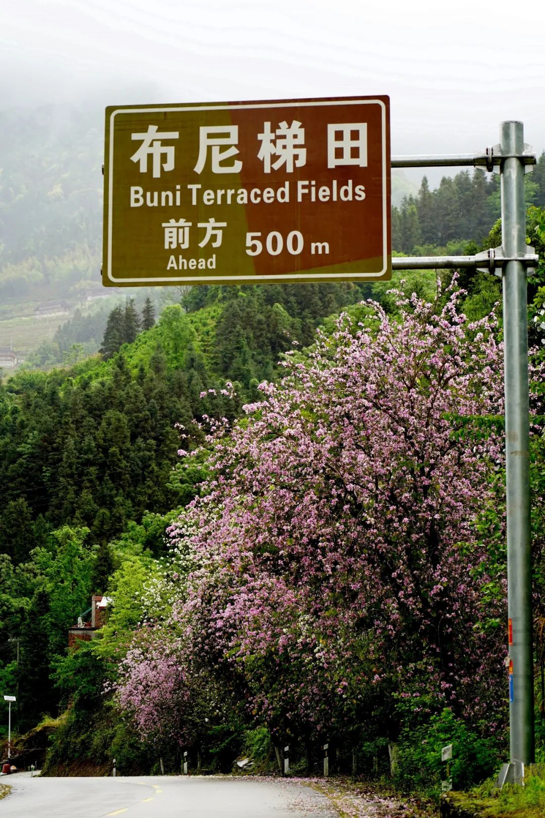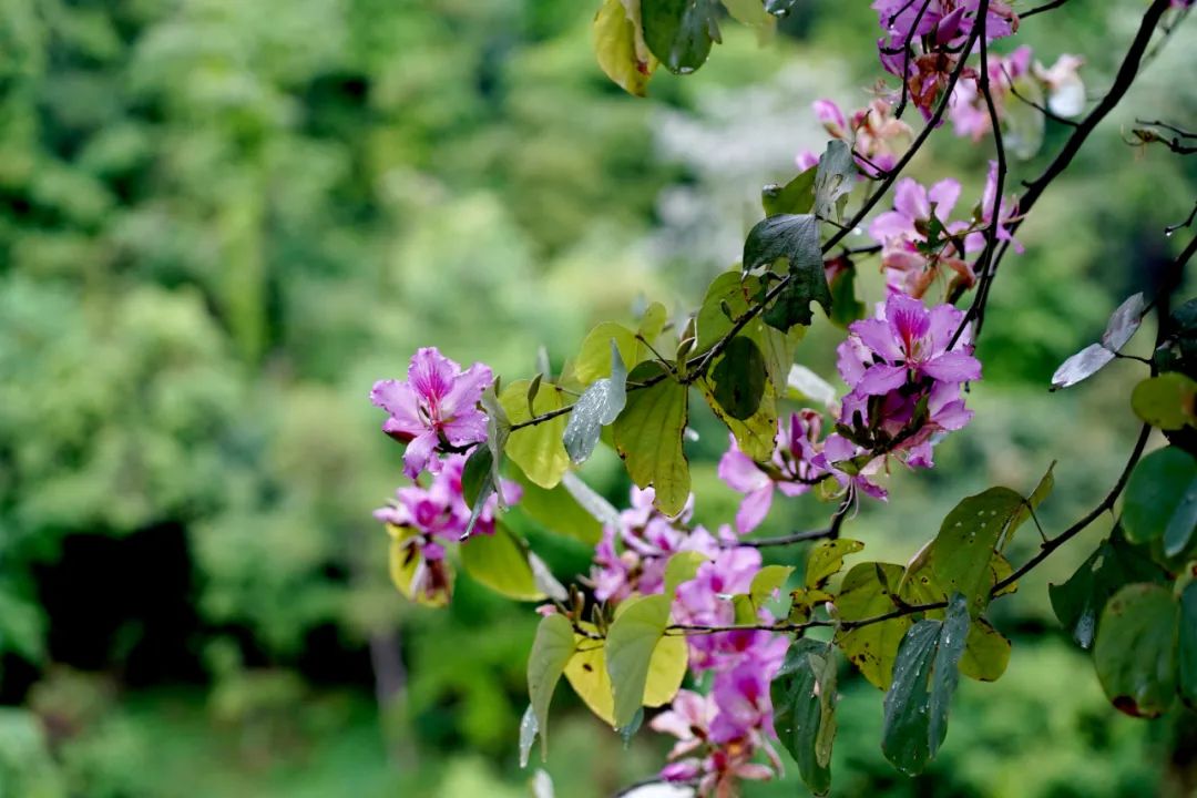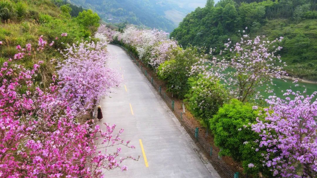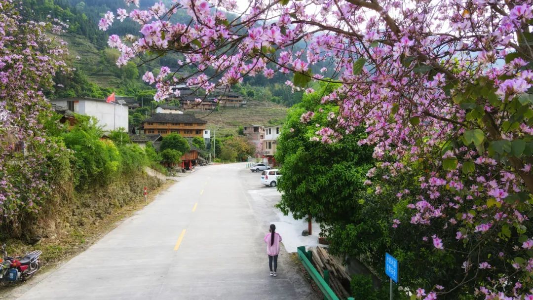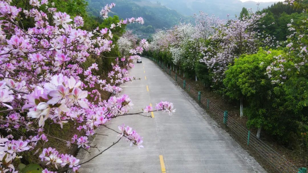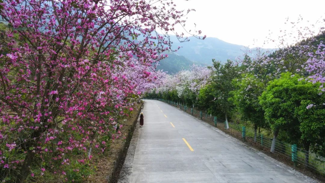 泗水乡沿路的紫荆花闻春而绽
