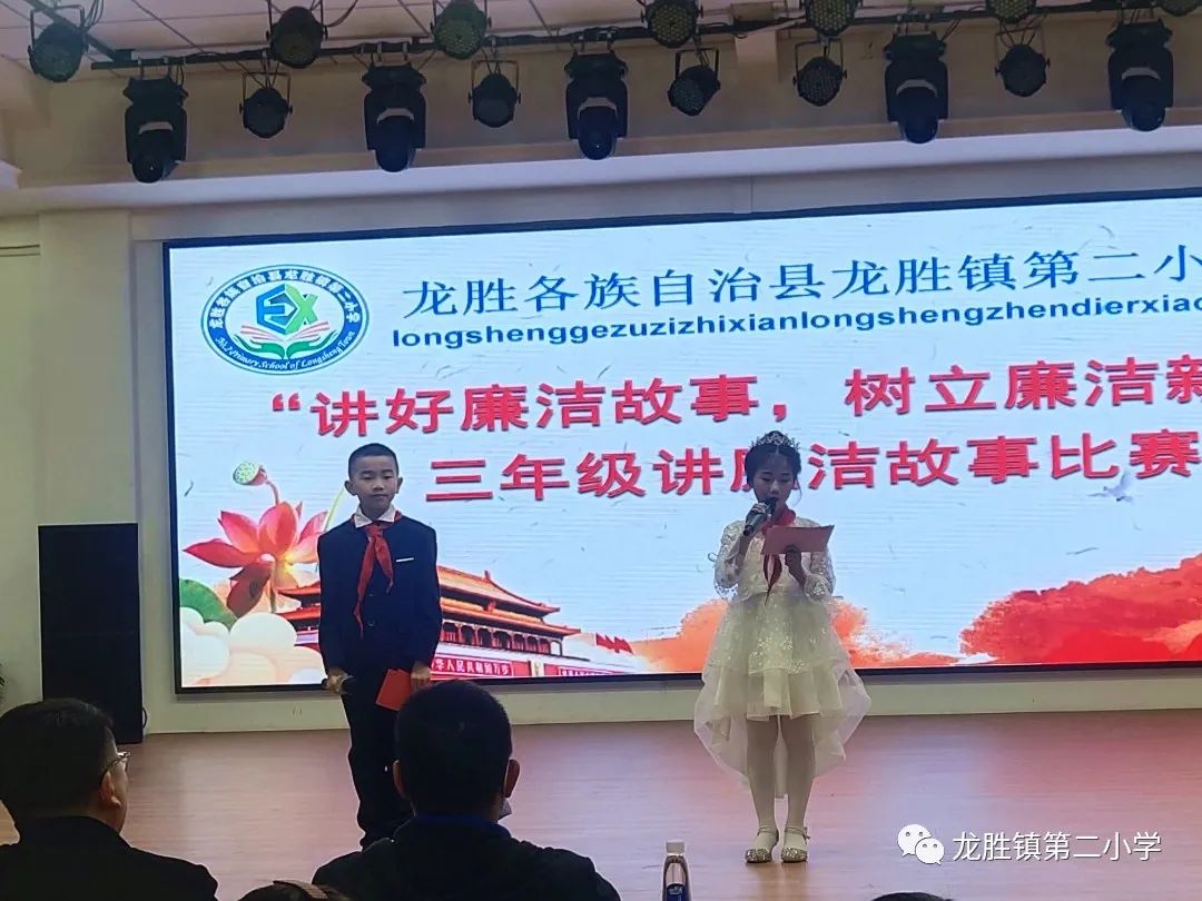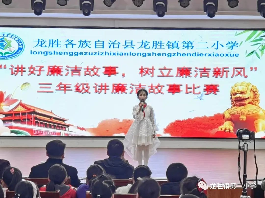 近日,龙胜镇第二小学组织三年级同学开展了“讲好廉洁故事 树立廉洁清风”讲廉洁故事比赛。