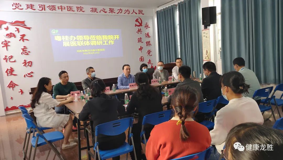 4月14日上午9时,龙胜各族自治县委常委、副县长周晓华在深圳市南山区派驻龙胜县帮扶医疗队队员陪同下莅临龙胜各族自治县中医医院调研粤桂协作对口帮扶工作并召开座谈会。县中医医院领导班子成员以及相关职能部门、科室负责人、深圳市南山区派驻龙胜县医疗队一同参加会议。