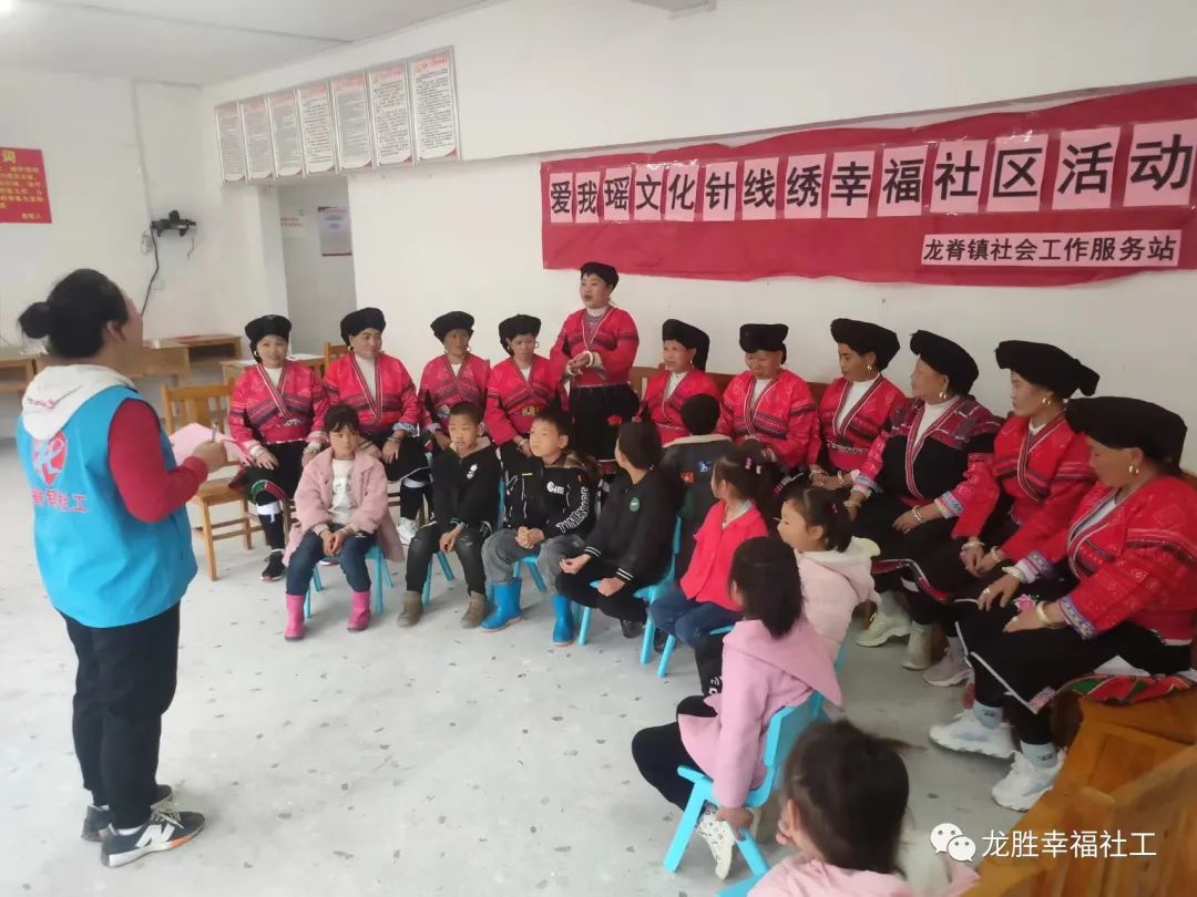 为加强农村留守老年人、留守妇女、留守儿童之间的互动交流,减少留守人的孤独感,给予瑶族长者展示才能的机会,在龙脊镇政府和中禄村村委的大力支持下,龙脊镇社工站,2022年4月15日组织中六村的“三留守”人员,开展了“爱我瑶文化,针线绣幸福”文化传承社区活动,共有22人参与。活动分三个环节,即:红瑶民族文化分享、刺绣技艺交流、包饺子。