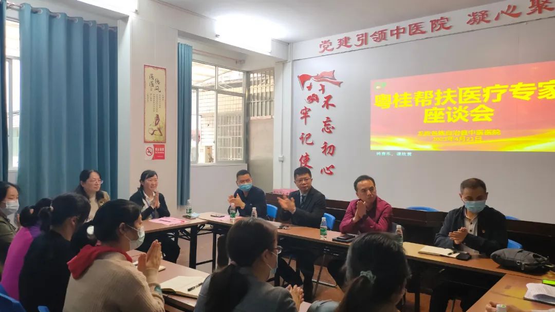 4月21日下午4点,龙胜中医院为深圳市南山区派驻龙胜中医院医疗专家吴坤松、韩新华举行帮扶期满座谈会,龙胜县委常委、副县长周晓华参加座谈会。