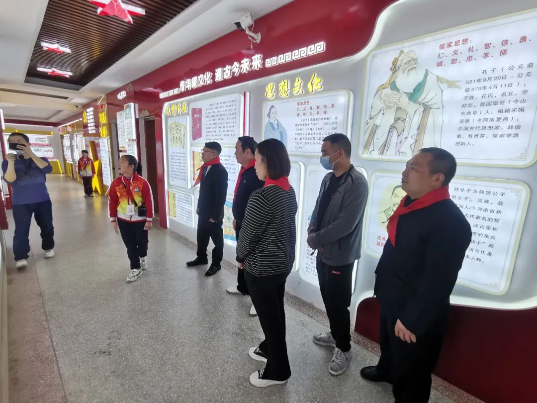 捐赠仪式结束后,参加活动的领导一同参观了龙胜镇二小的校园环境。校内有一条长廊,长廊墙上的板报内容里编写着丰富的课外知识,其中包括中国历史、红色文化、抗战文化、经典文学名著介绍等。