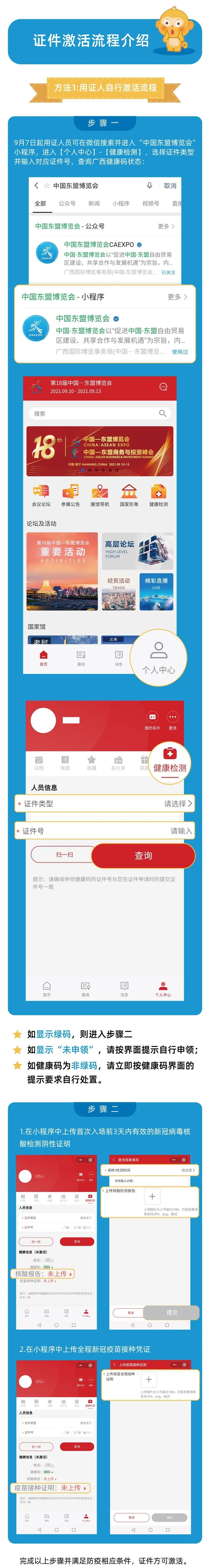 按照东博会新冠肺炎疫情防控工作要求,所有参与人员(包括:参展参会人员、布展施工人员、工作人员及志愿者等)须完成全程新冠病毒疫苗接种方可进场,开幕前须实施为期14天的自我健康监测,并注册“广西健康码”(见下图),绿码通行。您可以使用微信、支付宝扫描完成注册。