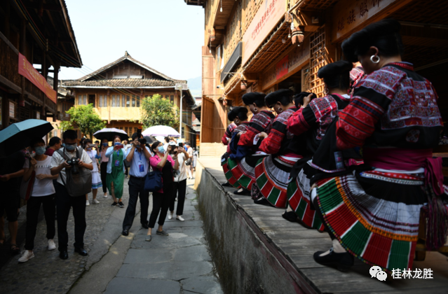 考察团一行先后到龙脊镇金江村黄洛瑶寨、金竹壮寨进行实地走访。观看了黄洛瑶寨长发歌舞表演、走访了长发小寨科技馆、观赏了红瑶服饰制作工艺展示、参观了金竹壮寨民宿,并调研了粤桂协作建设项目。