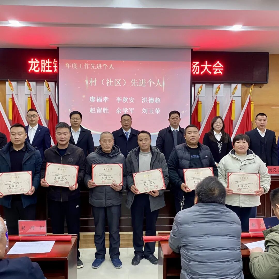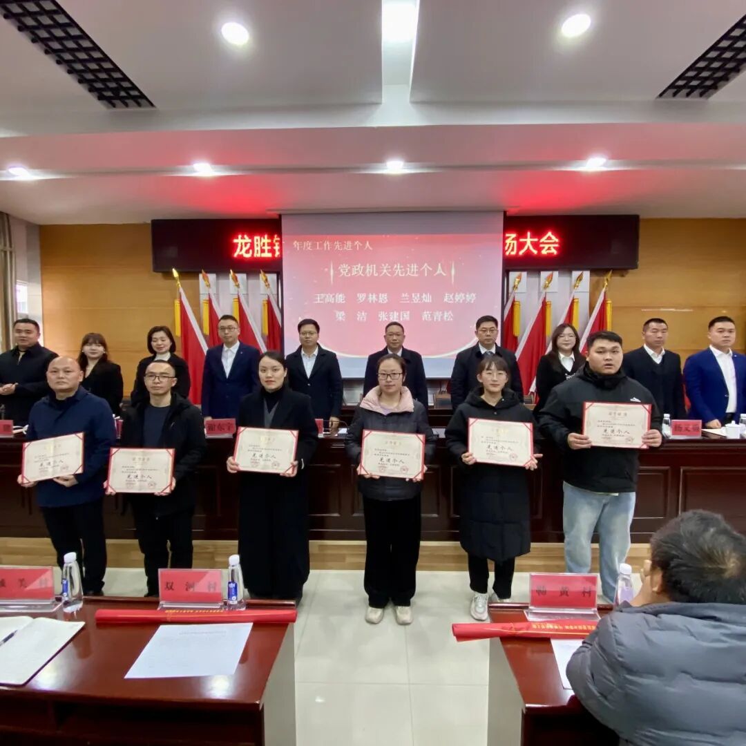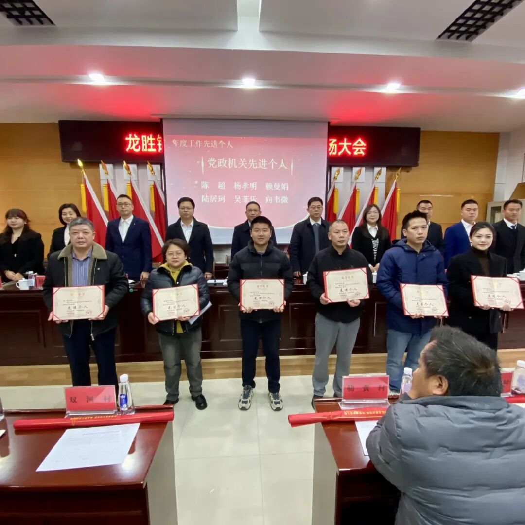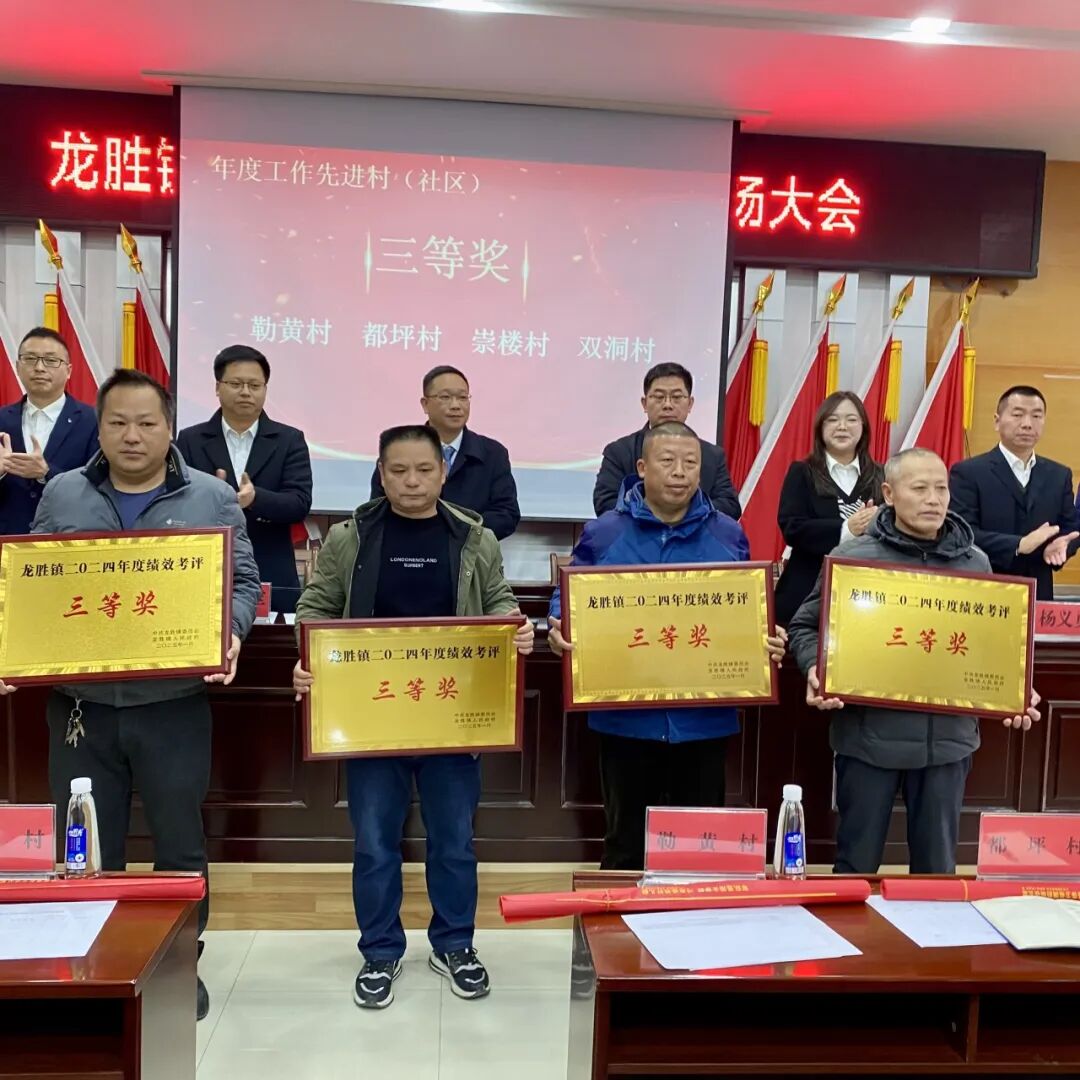 会上,镇党委副书记贲龙军宣读龙胜镇党委、政府《关于表扬2024年度绩效考评先进单位和先进个人的决定》,获奖的先进集体和个人依次上台领奖。
