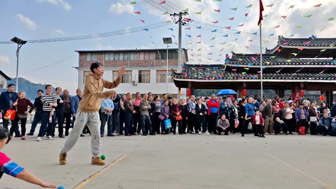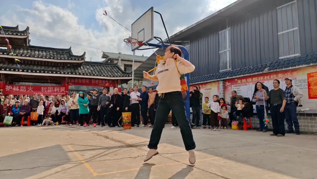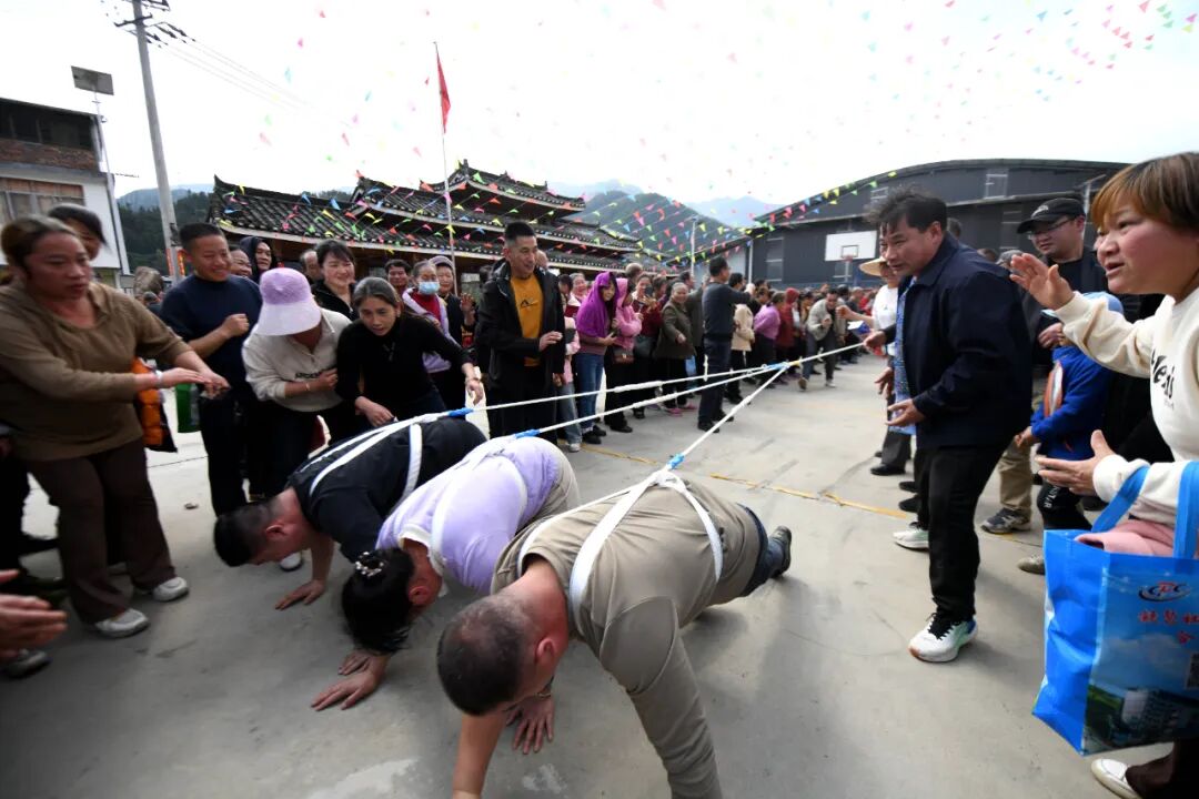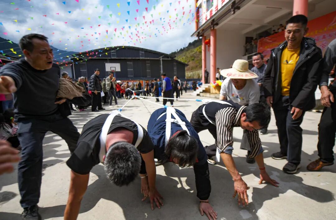 在演出现场上,彩调、三句半、情景剧、葫芦丝演奏等精彩节目轮番上演,村民们看得津津有味。在民族体育竞技活动中,最精彩的活动当属“大象拔河”。拔河比赛中,两男一女三人为一队,一声令下,双方使出全力争夺胜利。在加油声中,队员们咬紧牙关,扛住拉力,代表胜利的红带一会儿往左移,一会儿往右移,将比赛的气氛拉至高潮。