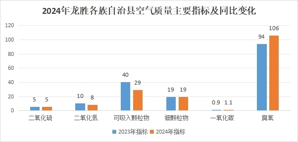 图1 2024年龙胜各族自治县空气质量主要指标及同比变化