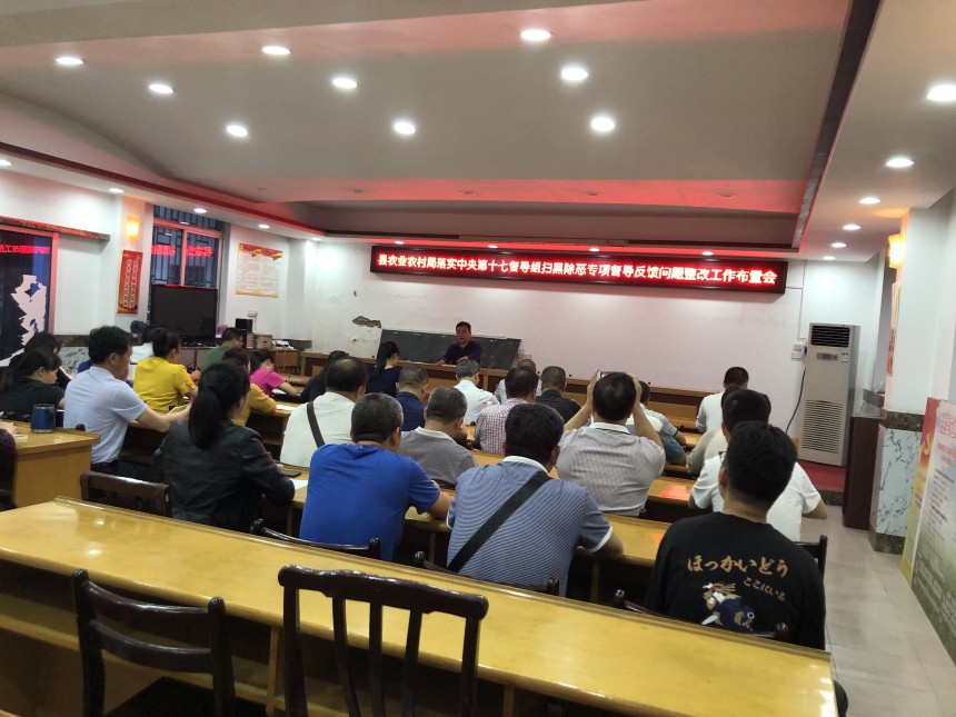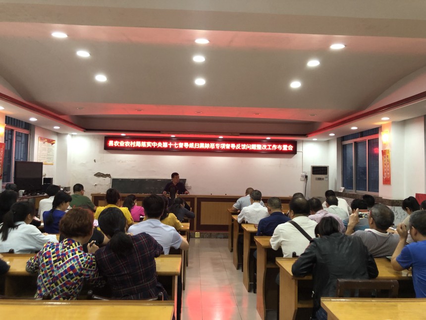 2019年4月28日16点,龙胜县农业农村局在局二楼会议召开落实中央第十七督导组扫黑除恶专项督导反馈问题整改工作布置会,会上,县农业农村局局长石腾龙组织全体干部职工学习了全县落实中央第十七督导组扫黑除恶专项督导反馈问题整改方案内容,以及反馈问题和整改措施。