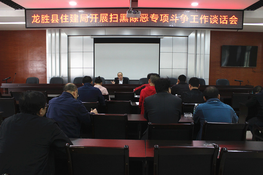 为认真贯彻落实自治县委、县政府关于扫黑除恶专项斗争工作部署要求,推动住建系统扫黑除恶专项斗争向纵深推进。5月10日,龙胜县住建局组织各股室、二层机构及三家公司负责人开展扫黑除恶专项斗争约谈,层层落实主体责任。