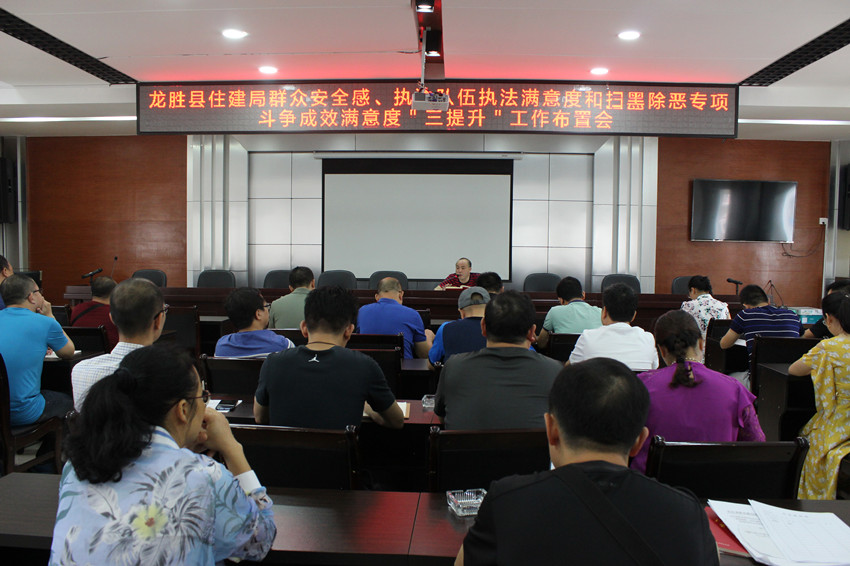 为切实提高群众安全感、满意度,持续深入开展扫黑除恶专项斗争,龙胜县住建局积极部署,于5月28日上午,组织全体干部职工及二层机构、三家公司主要负责人,召开群众安全感、执法队伍执法满意度和扫黑除恶专项斗争成效满意度“三提升”工作布置会。