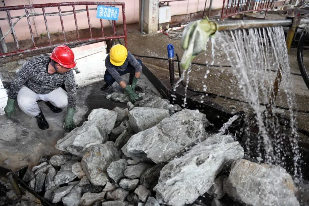 3月1日,在广西龙胜华美滑石开发有限公司上朗矿区洗选厂,工人在洗矿、选矿、送矿,一派繁忙景象。为服务和保障疫情防控期间企业复工复产,龙胜各族自治县采取分级精准复工等措施,帮助企业落实疫情期间生产要求,安全有序推进企业复工复产,确保完成全年经济发展目标任务。