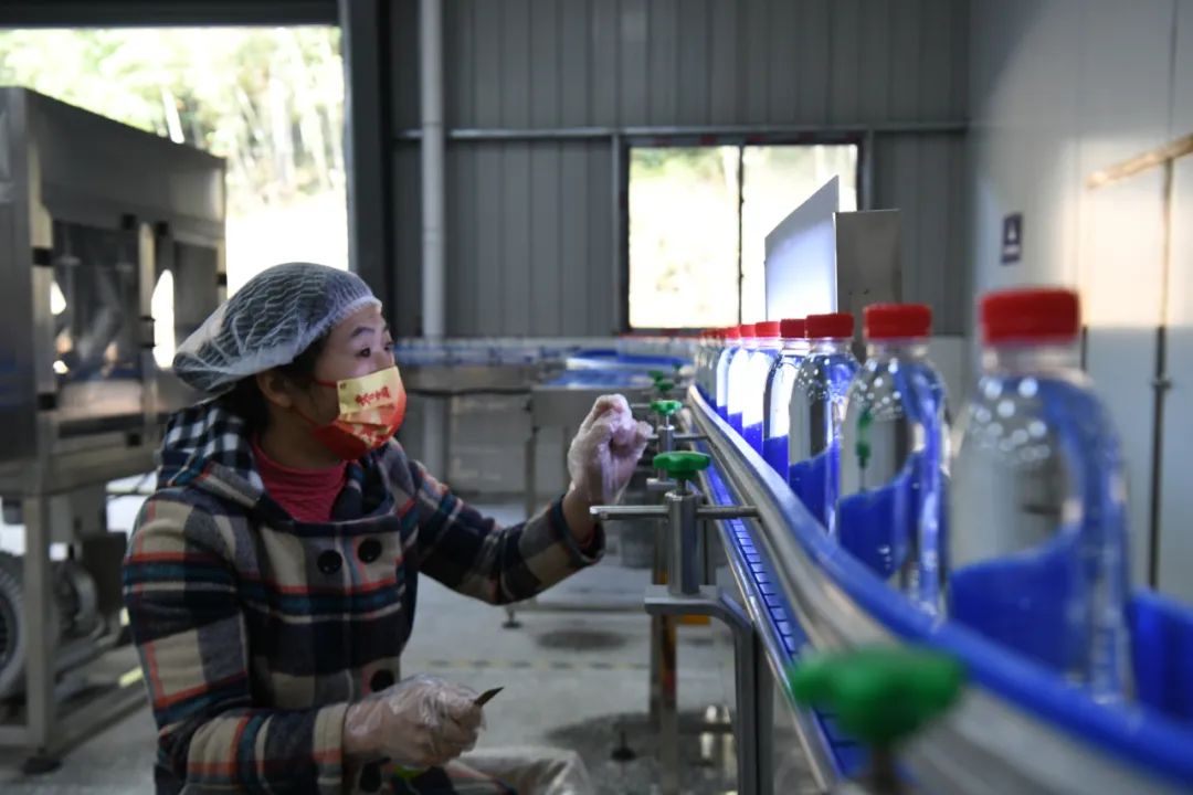 “我之前都在外地务工,离家很远,不能照顾到老人和小孩。现在我在这上班,既能照顾到老人和小孩,又有一份收入,可以补贴家用”,年初刚来这上班的刘碧昀一边检查山泉水的包装一边说道。像刘碧昀这样的村民有很多,他们如果选择外出务工就意味着要远离家乡,远离家庭。竹蛙山泉基地的建立,解决了村民们面临的窘境,让他们在家门口务工,带动了当地的经济发展。