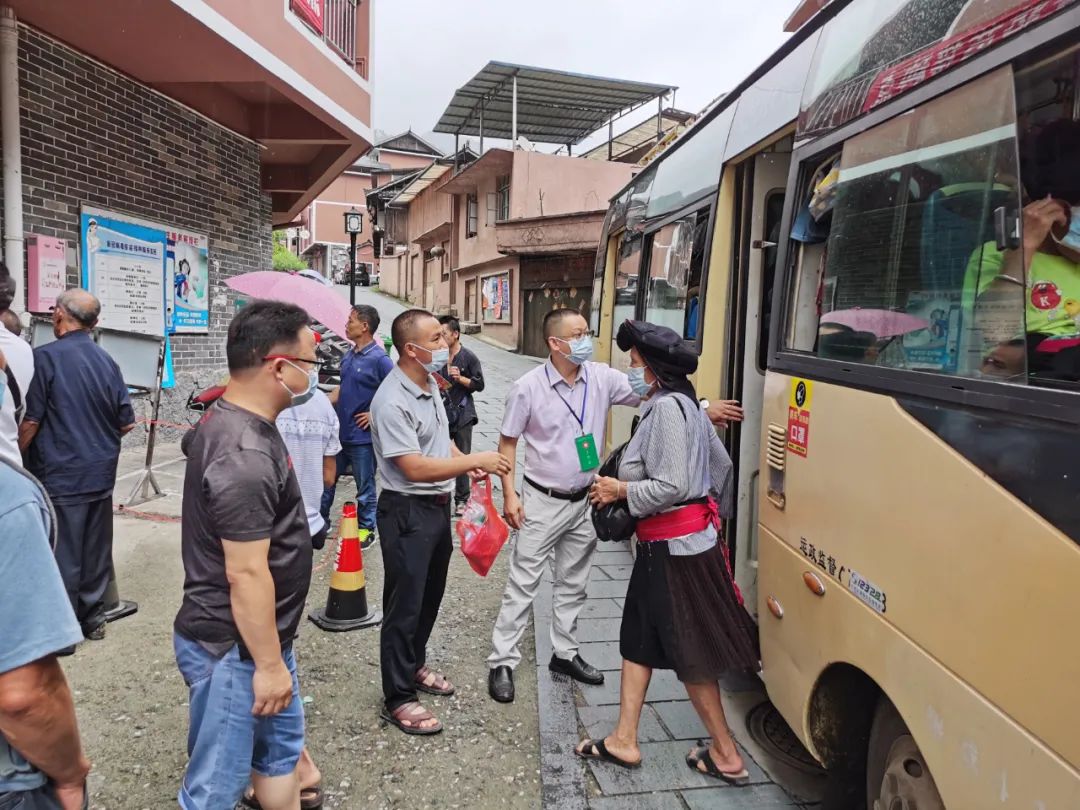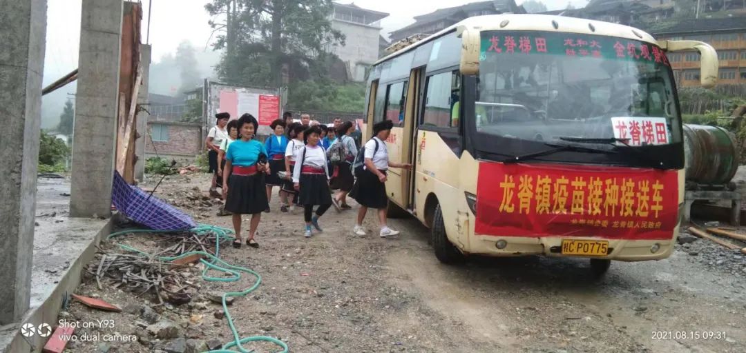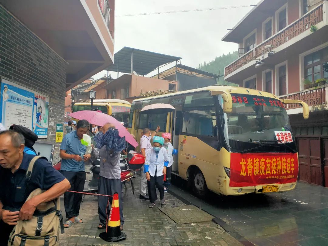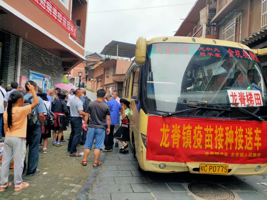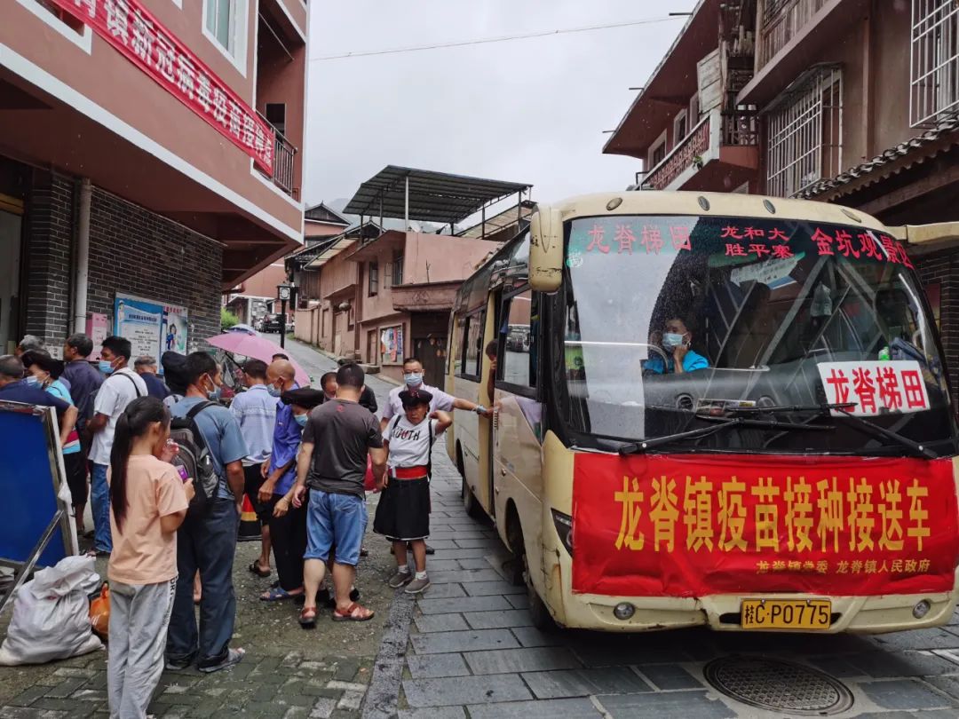 针对山区村庄离接种点较远,山区老人行动不便的情况,龙脊镇科学谋划,精心部署,派出了6辆“疫苗接种接送车”分别前往金江村、大寨村、中六村、小寨村、江柳村、平安村等6个行政村,统一接送辖区内未接种人员前往镇卫生院进行疫苗接种。镇、村干部挨家入户宣传动员,并作为领队组织群众定时定点集中候车,每辆专车都安排了镇政府工作人员跟车,到了卫生院,镇政府和卫生院的工作人员依次搀扶行动不便的群众下车、协助登记信息、告知接种流程、引导群众候场等。通过发挥乡镇、村党支部、志愿者作用,提供接送、绿色通道等服务,打通疫苗接种和为民办实事的“最后一公里”。