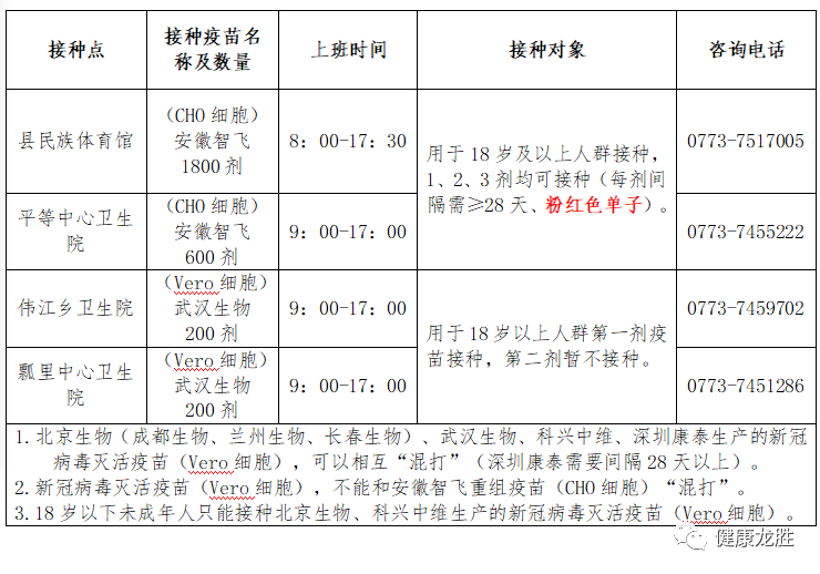 到期接种第二剂灭活疫苗(Vero细胞)的群众请耐心等待,自治区会尽快统一安排第二剂的接种,后续请关注“健康龙胜”微信公众号,及时了解疫苗接种安排。