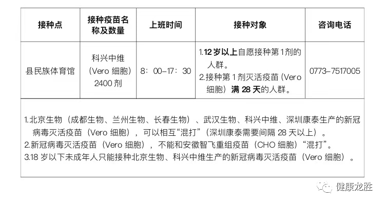 后续请关注“健康龙胜”微信公众号及时了解疫苗接种安排。