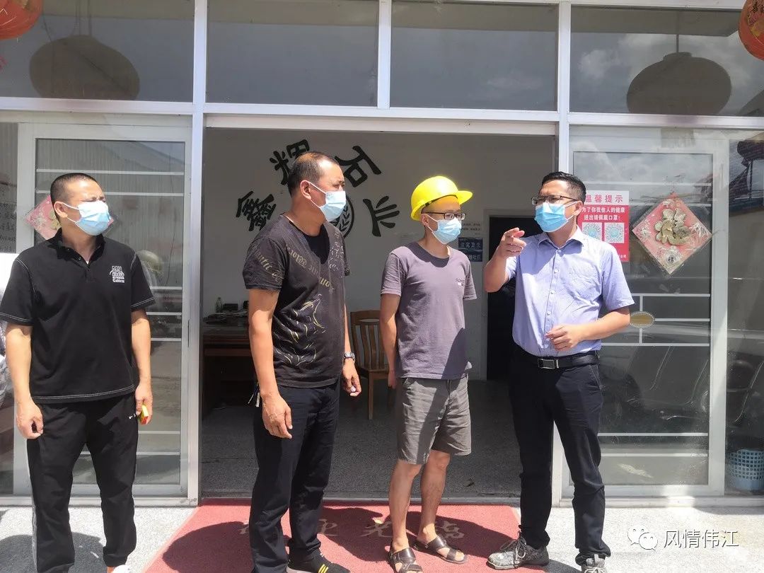 8月5日,伟江乡党委政府第一时间召开领导班子会议,深入贯彻落实全区防疫工作会议精神,进一步深化疫情防控和疫苗接种工作并启动疫情防控预案。会议强调疫情防控紧迫性并对辖区内各村各组的疫情防控工作做了详细的工作部署,落实好相关防疫措施,把握重点,细化到个人。当天下午,伟江乡党委书记唐剑兵和乡党委委员、乡人民政府副乡长陈庚赓走访辖区内的民营企业鑫辉石材,了解企业疫情防控情况并对企业疫情防控工作提出新要求和指导。