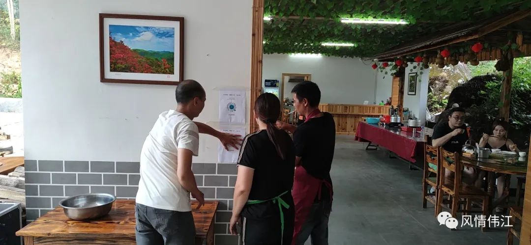 8月6日,根据相关疫情防控工作要求,政府工作人员深入辖区内的各个农家乐张贴疫情防控出入码以及对管理人员开展疫情防控知识的宣传和指导,叮嘱各个农家乐做好基础问询、体温测量和消毒工作,做到一有敏感人员立刻上报。