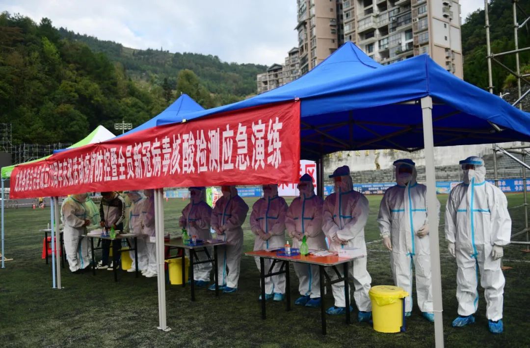 当天,参加演练的单位有县疾病预防控制中心应急队、县人民医院应急队、县妇幼保健院应急队、县中医医院应急队、各乡镇卫生院抽调的应急队等。配备有流行病学调查车、样品转运车、负压救护车、后勤保障车等各类车辆。演练内容包括县庆会场入场健康码核验、体温检测、异常情况处置、启动核酸检测、采样场地开展消杀工作等。