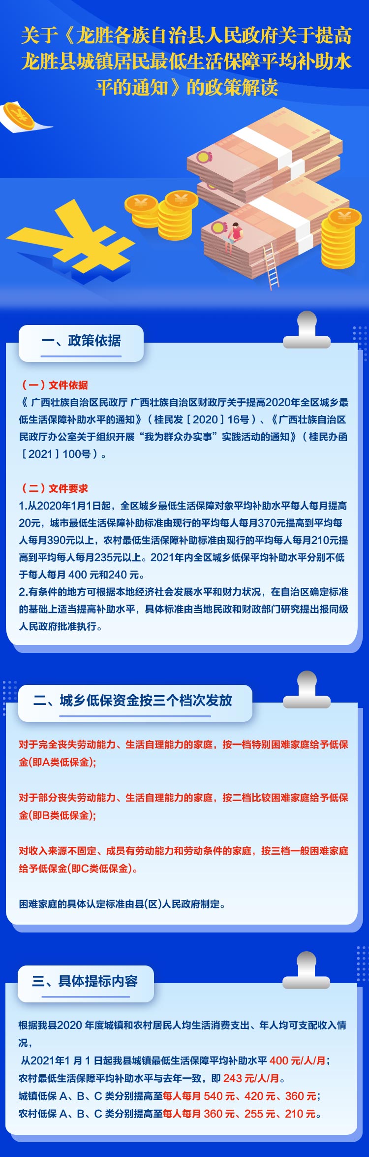 相关文件:龙政发〔2021〕21号 龙胜各族自治县人民政府关于提高龙胜县城镇居民最低生活保障平均补助水平的通知