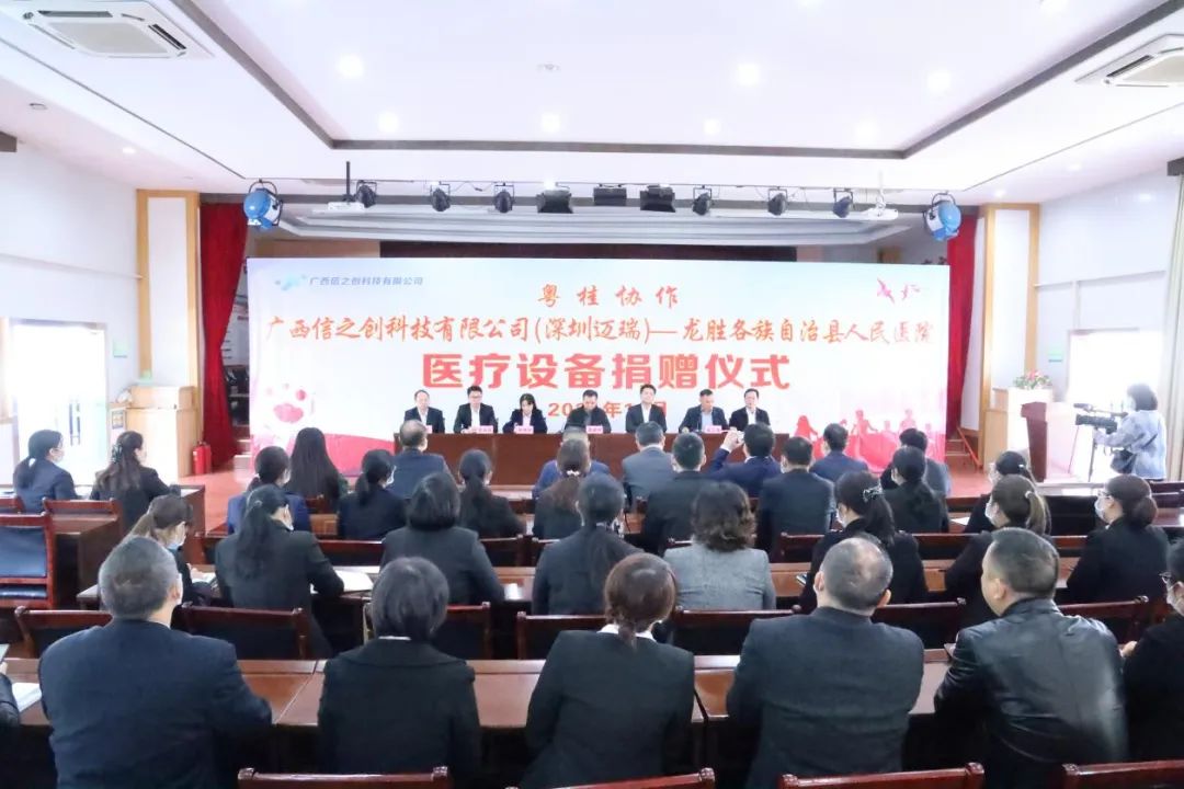 乐善永恒,大爱无疆。2021年11月10日上午,广西信之创科技有限公司捐赠龙胜县医疗设备活动仪式在龙胜各族自治县人民医院多功能会议室举行,深圳市南山区派驻干部、龙胜各族自治县委常委、副县长周晓华,广西信之创科技有限公司副总经理支跃、大客户经理李双瑶,龙胜各族自治县卫生健康局局长蒋江涛,龙胜各族自治县人民医院院长姜华以及广西信之创科技有限公司人员、县人民医院的党政领导班子和中层以上干部职工参加了捐赠仪式。